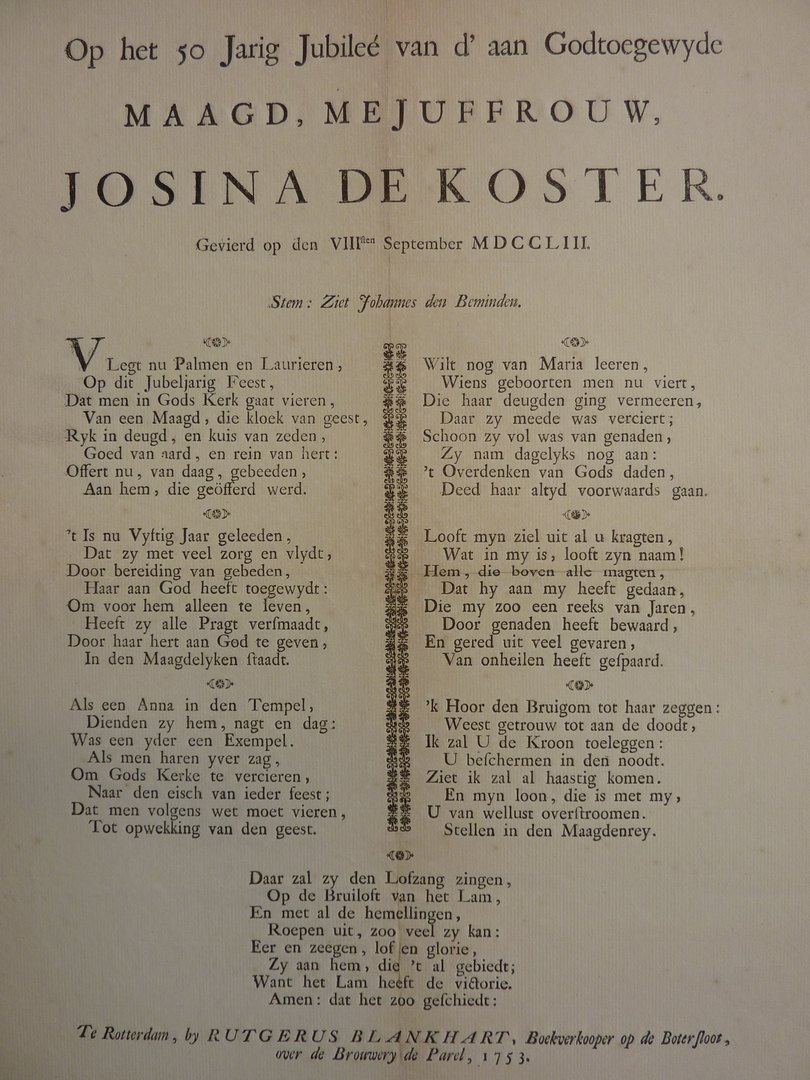 Op het 50 jarig jubileé ... Godtoegewyde maagd, ... Josina de Koster ...