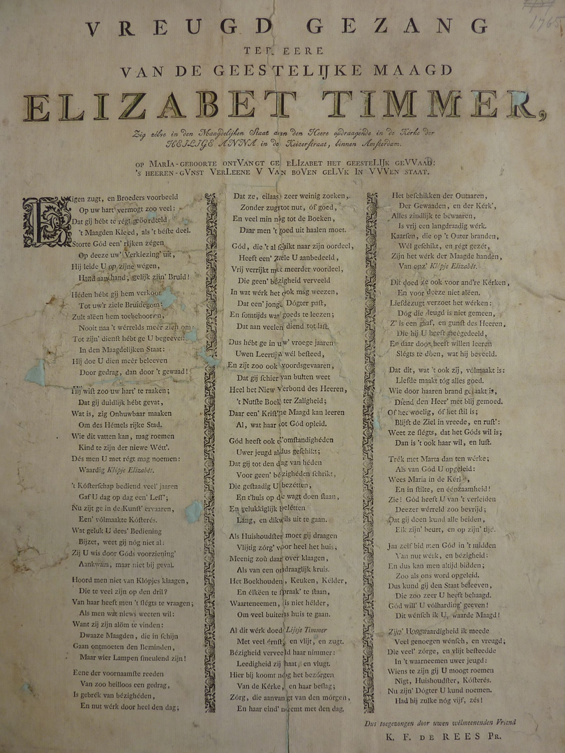 Vreugd gezang ... geestelijke maagd Elisabet Timmer zig zelve ... aan den Heere opdraagende ...