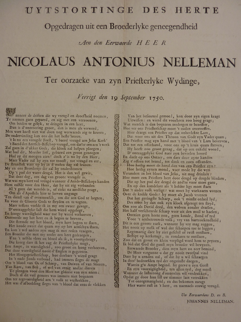 Uytstortinge des herte ... Nicolaus Antonius Nelleman ... priesterlyke wydinge, ...