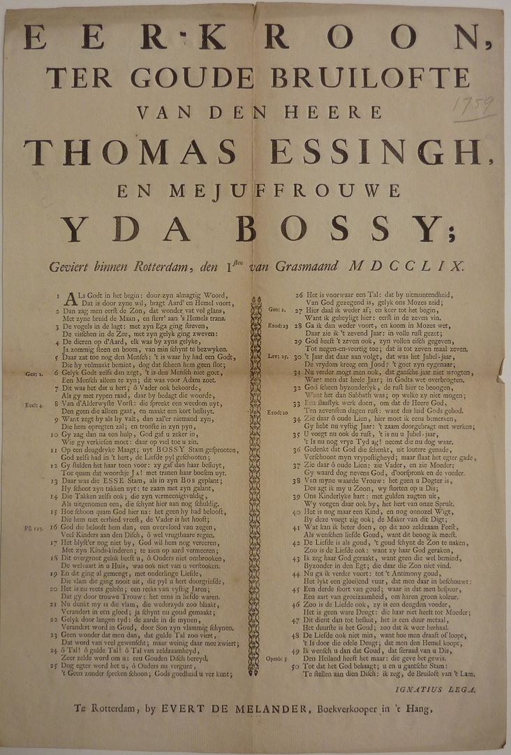 Eer-kroon, ter goude bruilofte ... Thomas Essingh, ... Yda Bossy; ...