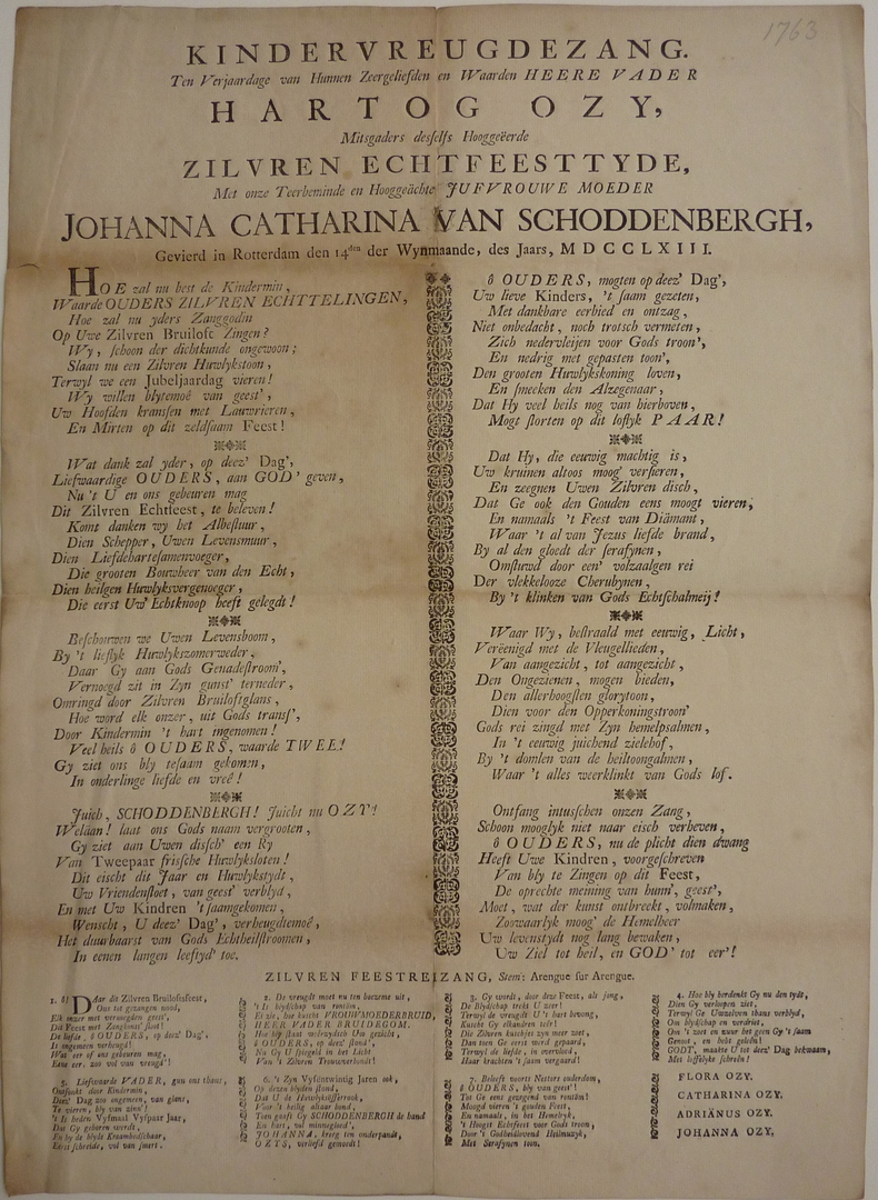 Kinder... Hartog Ozy ... zilvren echtfeesttyde ... Johanna Catharina van Schoddenbergh, ...
