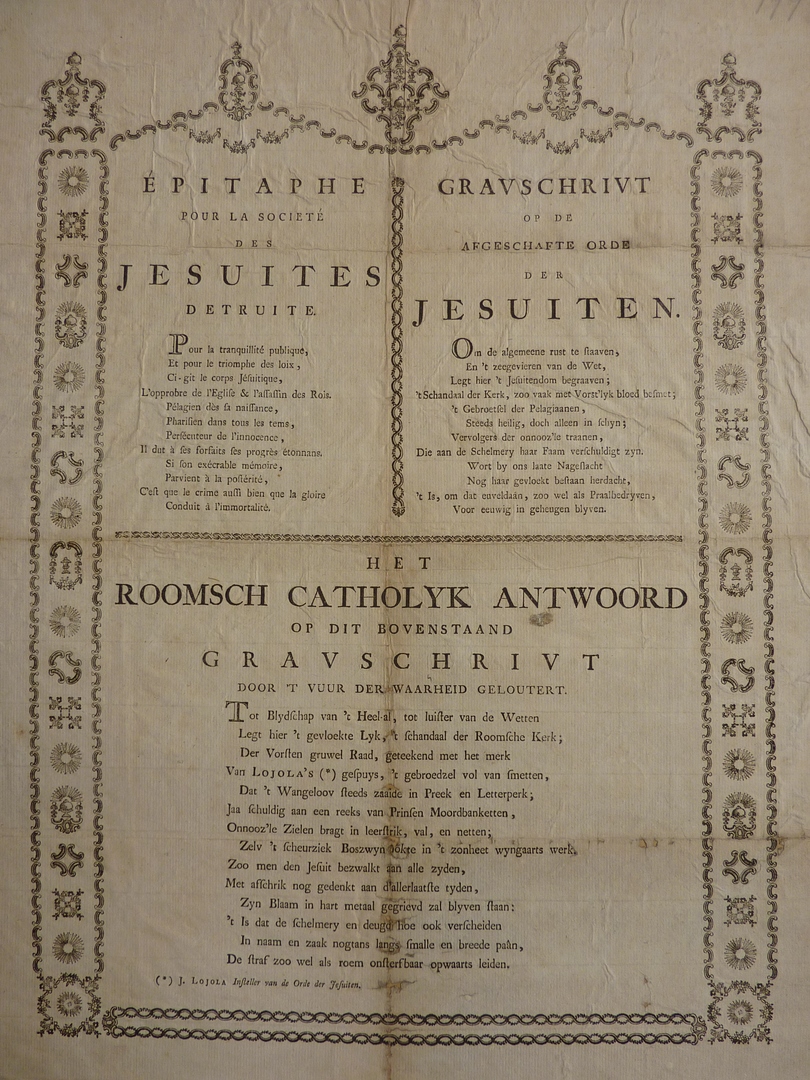 Epitaphe ... Gravschrivt op de afgeschafte orde der Jesuiten ... roomsch catholyk antwoord ...