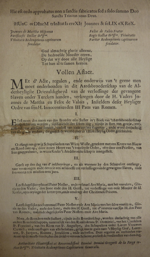 Hic est ordo approbatus ... Vollen aflaet ... sijn H. Innocentius den III paus van Romen ...