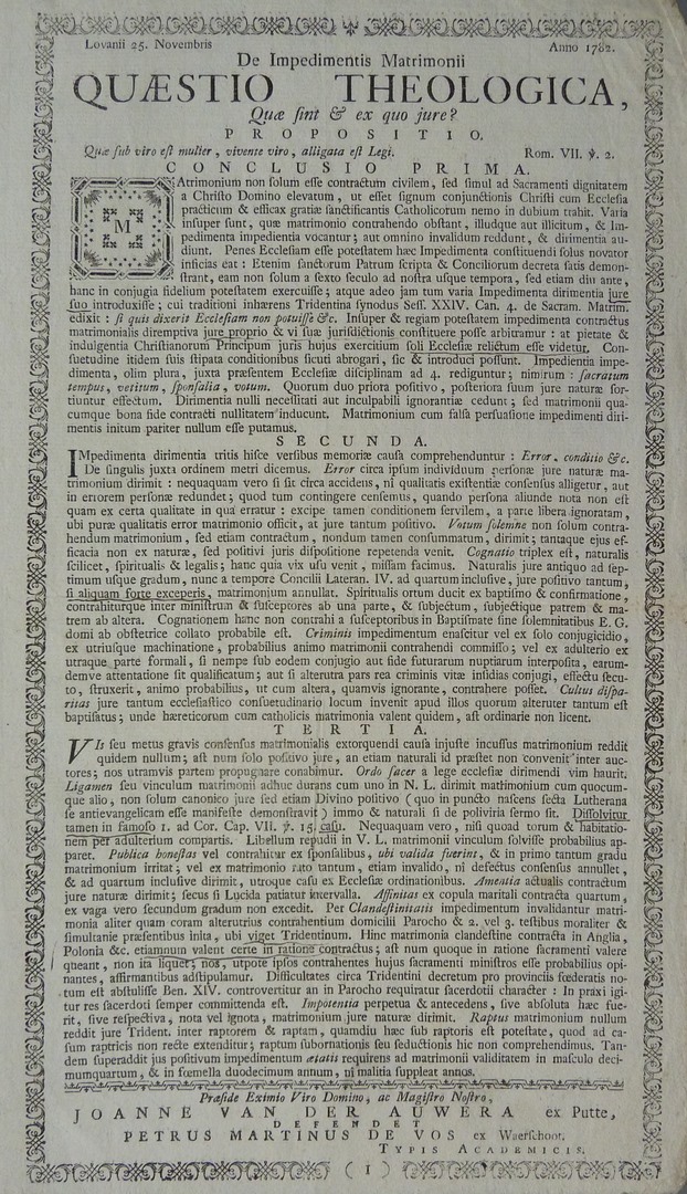Lovanii ... Quaestio theologica, ... Joanne van der Auwera ... defendet Petrus Martinus de Vos ...