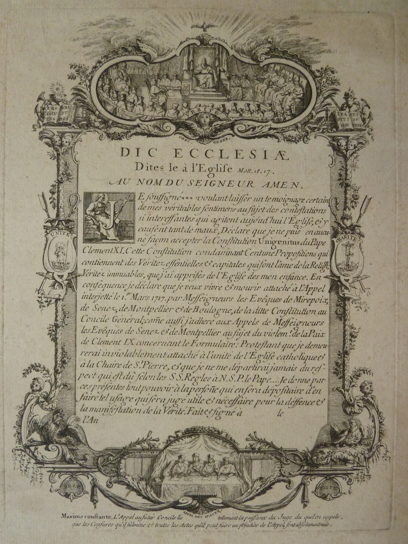Dic ecclesiae ... puis en aucune façon accepter la constitution Unigenitus du pape Clement XI ...