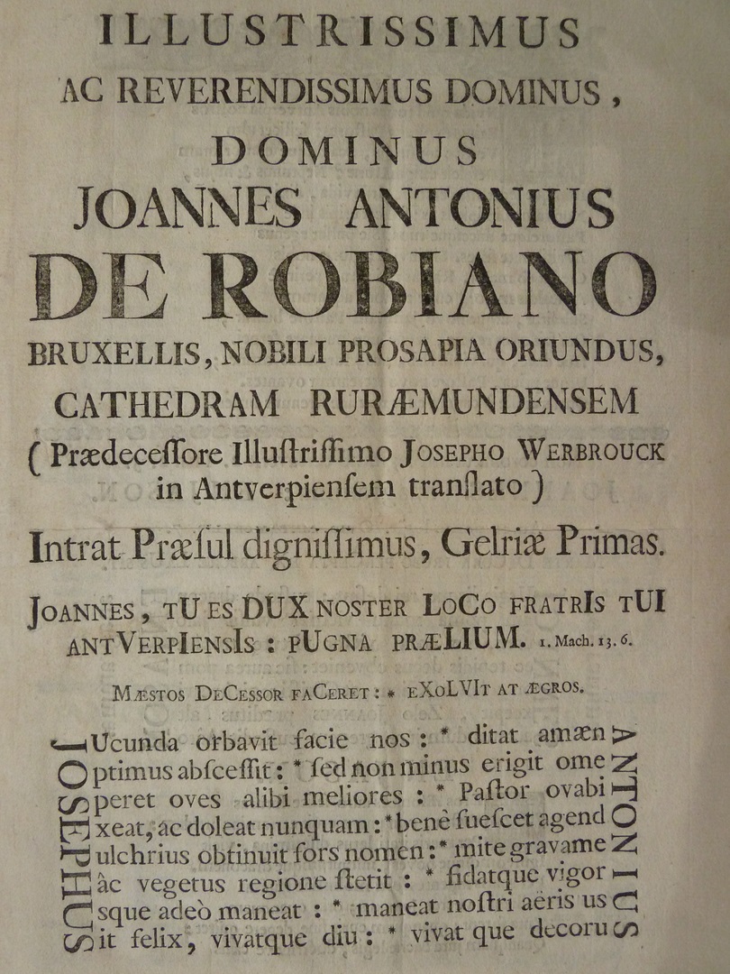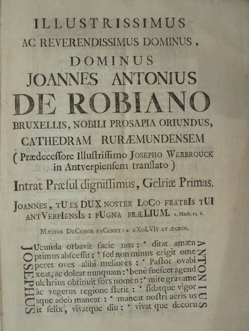Illustrissimus ... Joannes Antonius de Robiano ... (twee bladen)