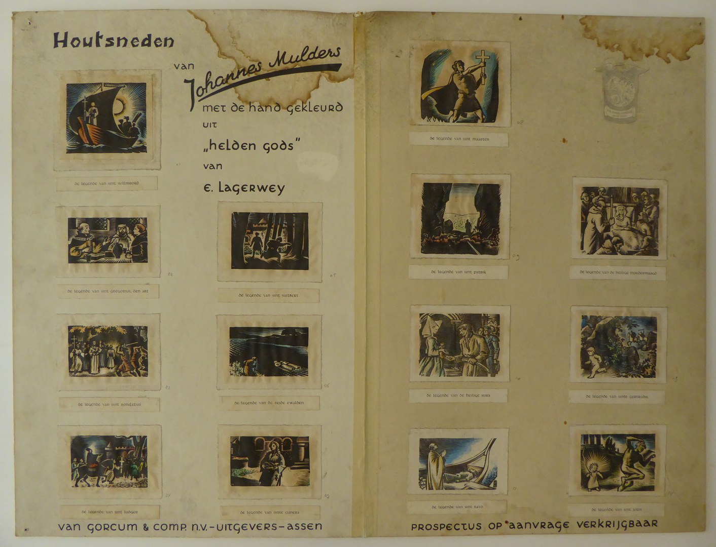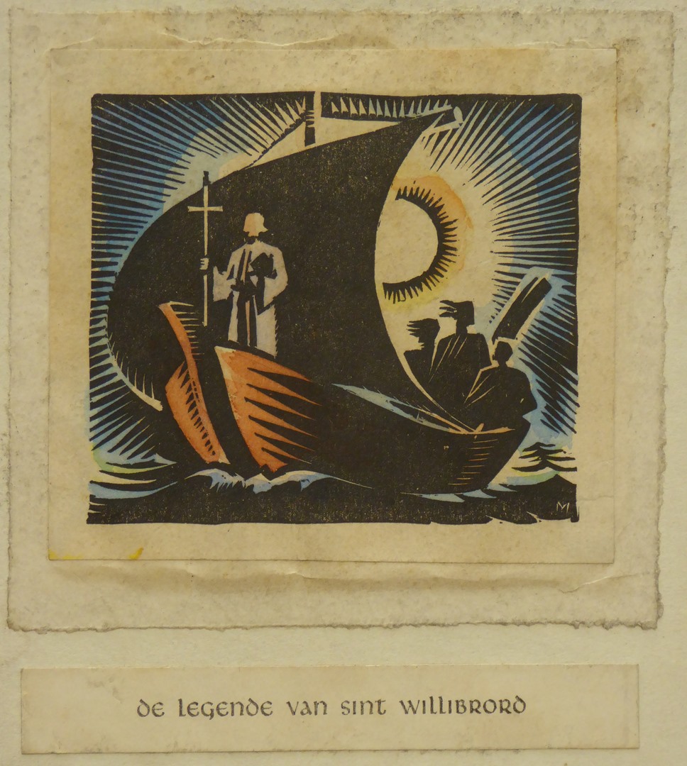 Houtsneden uit Helden Gods van E. Lagerwey (serie): De legende van St. Willibrord, ingekleurd