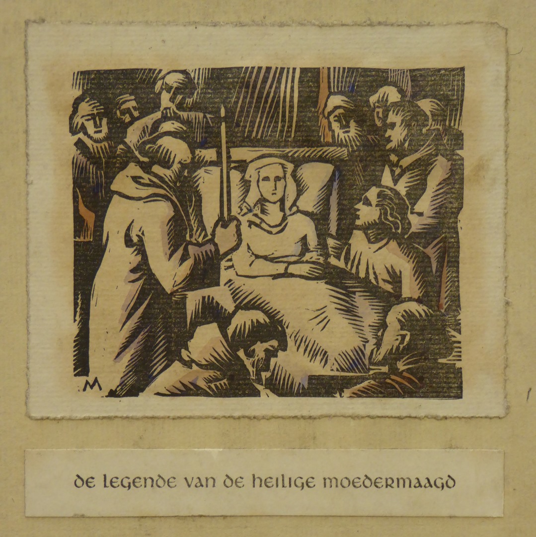 Houtsneden uit Helden Gods van E. Lagerwey (serie): De legende van de H. Moedermaagd (Maria), ingekleurd