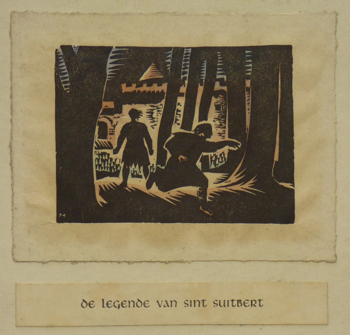 Houtsneden uit Helden Gods van E. Lagerwey (serie): De legende van St. Suitbert, ingekleurd