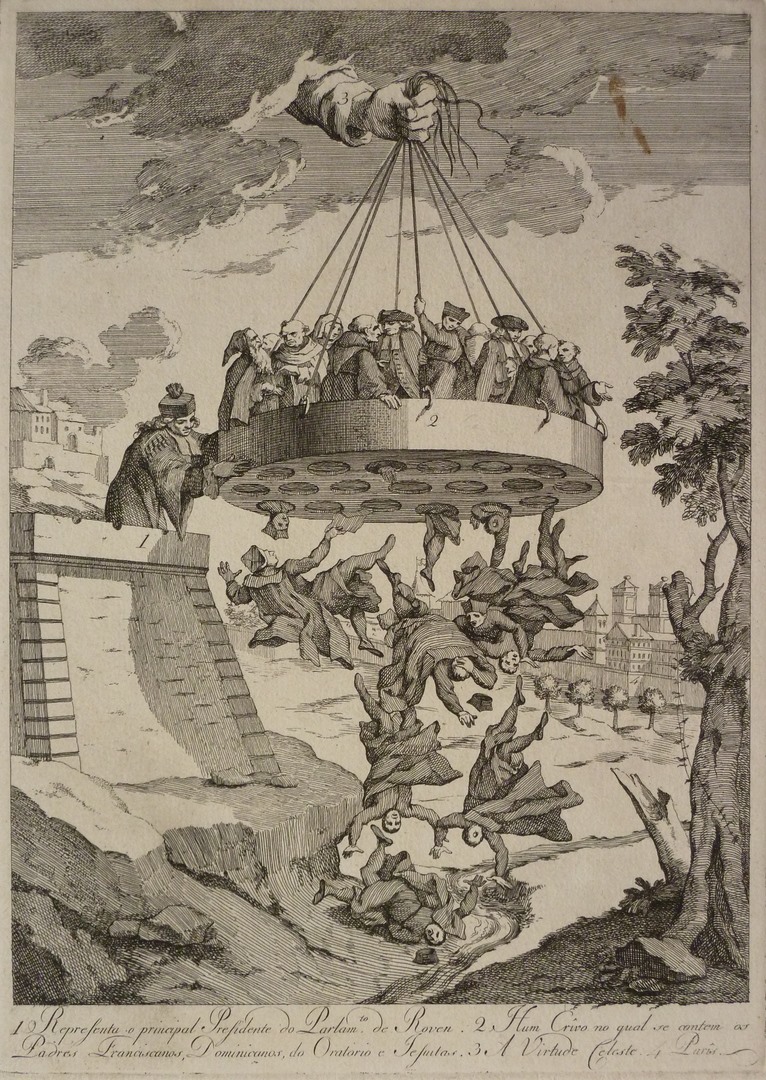 Spotprent over de scheiding van geestelijken (orde geestelijken en jezuïeten)