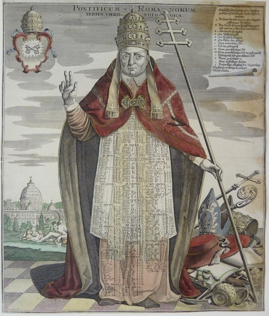 Naamlijst der pausen vanaf Christus tot en met Clemens XI (1700), ingekleurd