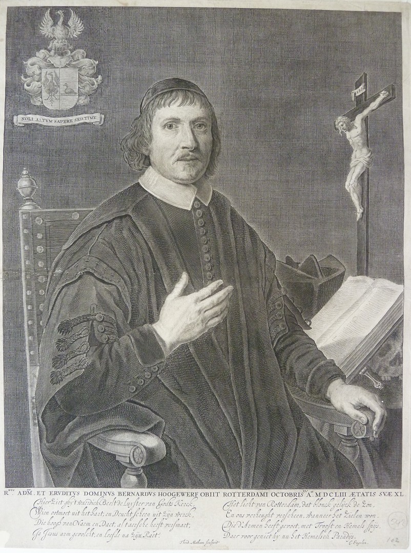 Portret van Bernardus Hoogewerf, met tekst in Latijn en Nederlands