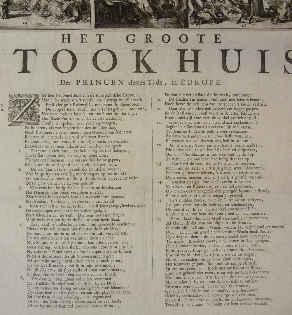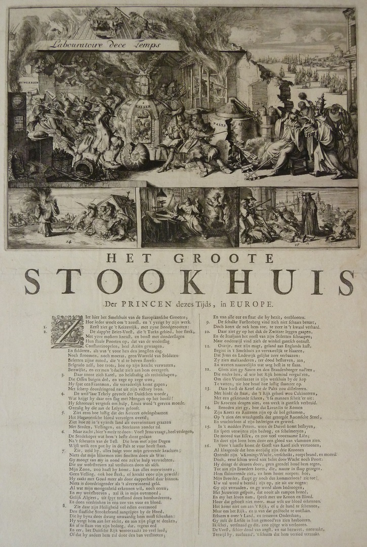 "Groote stookhuis der princen dezes tijds, in Europa", Lodewijk XIV bij een smeltoven, spotprent