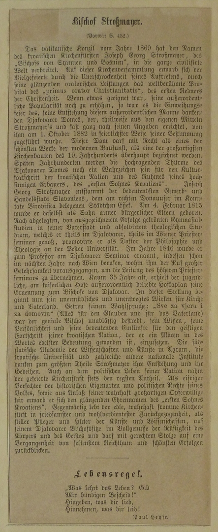 Portret van Joseph Georg Strossmayer, foto van een ets, beschrijving van zijn leven