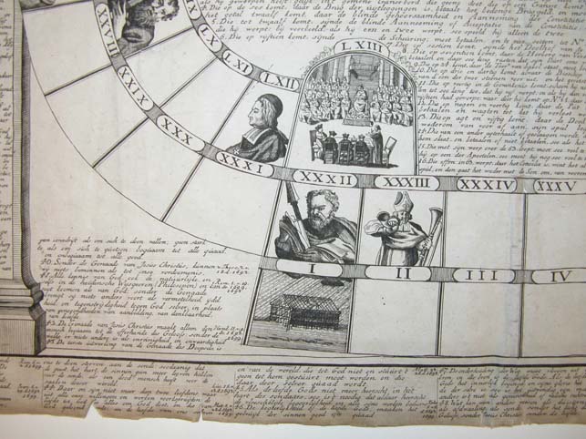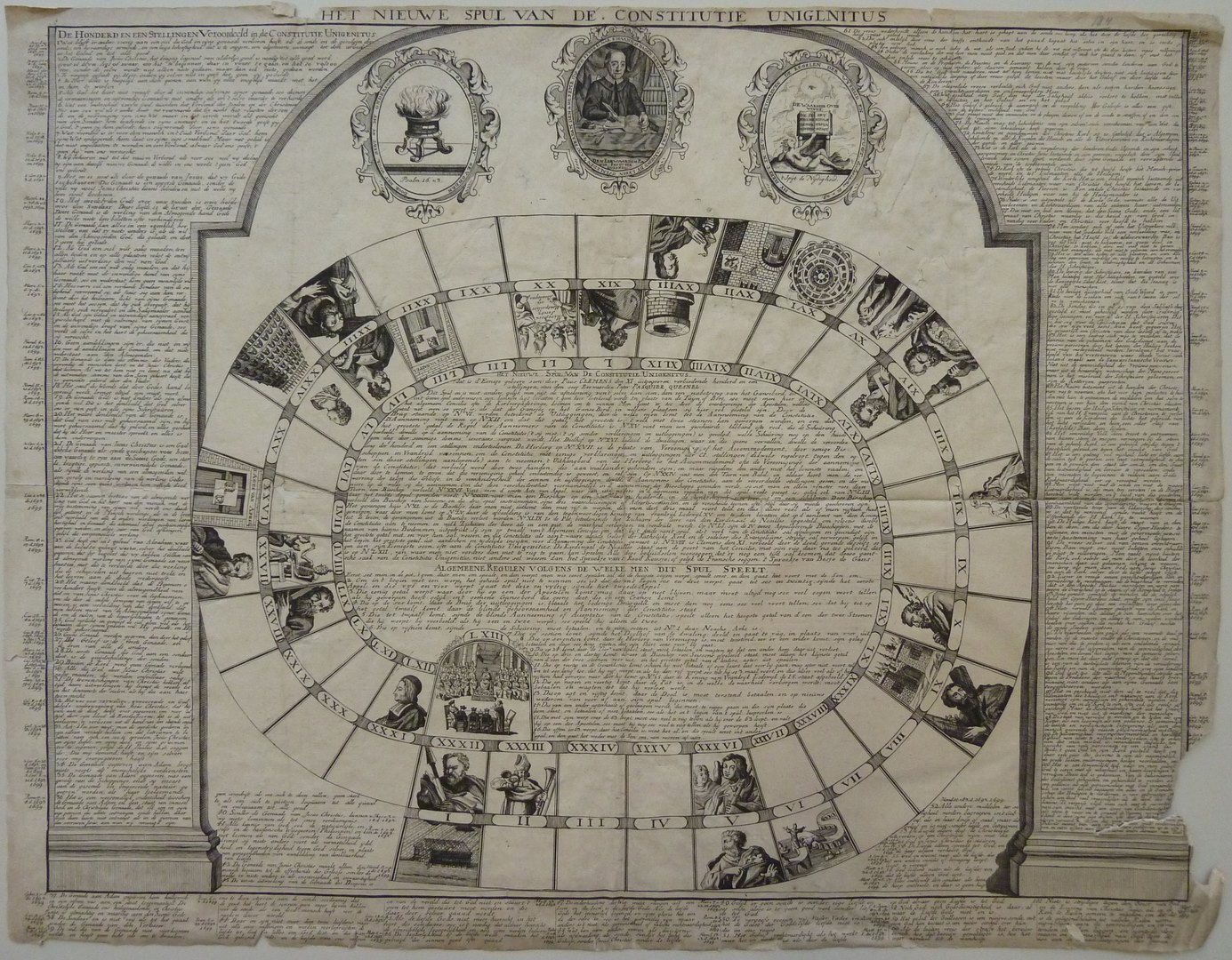 "Nieuwe spel van de constitutie unigenitus" ganzenbord, nu met portret Pasquier Quesnel