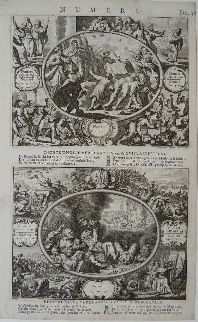 Serie 'Alle Voornaemste Historien .. Testaments': Oproer Korach, Dathan, Abiram tegen Mozes en Aäron