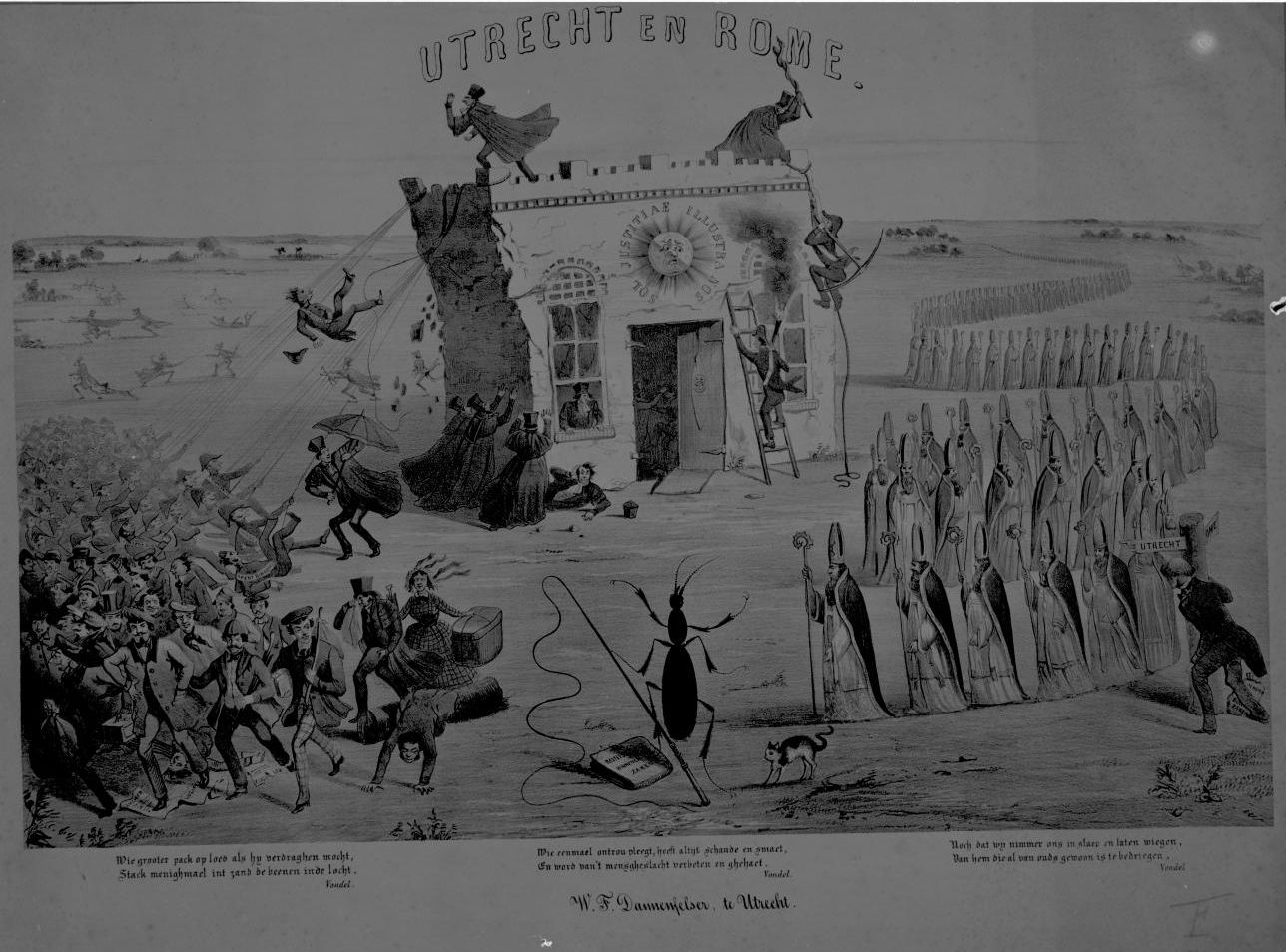 "Utrecht en Rome", spotprent op de opheffing der Utrechtse hogeschool