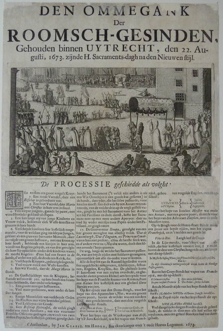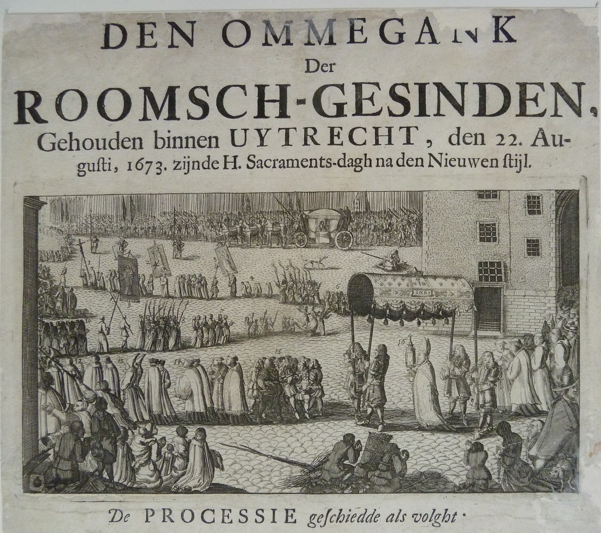 "Ommegank der Roomsch-gesinden" spotprent met Anti-katholieke strekking