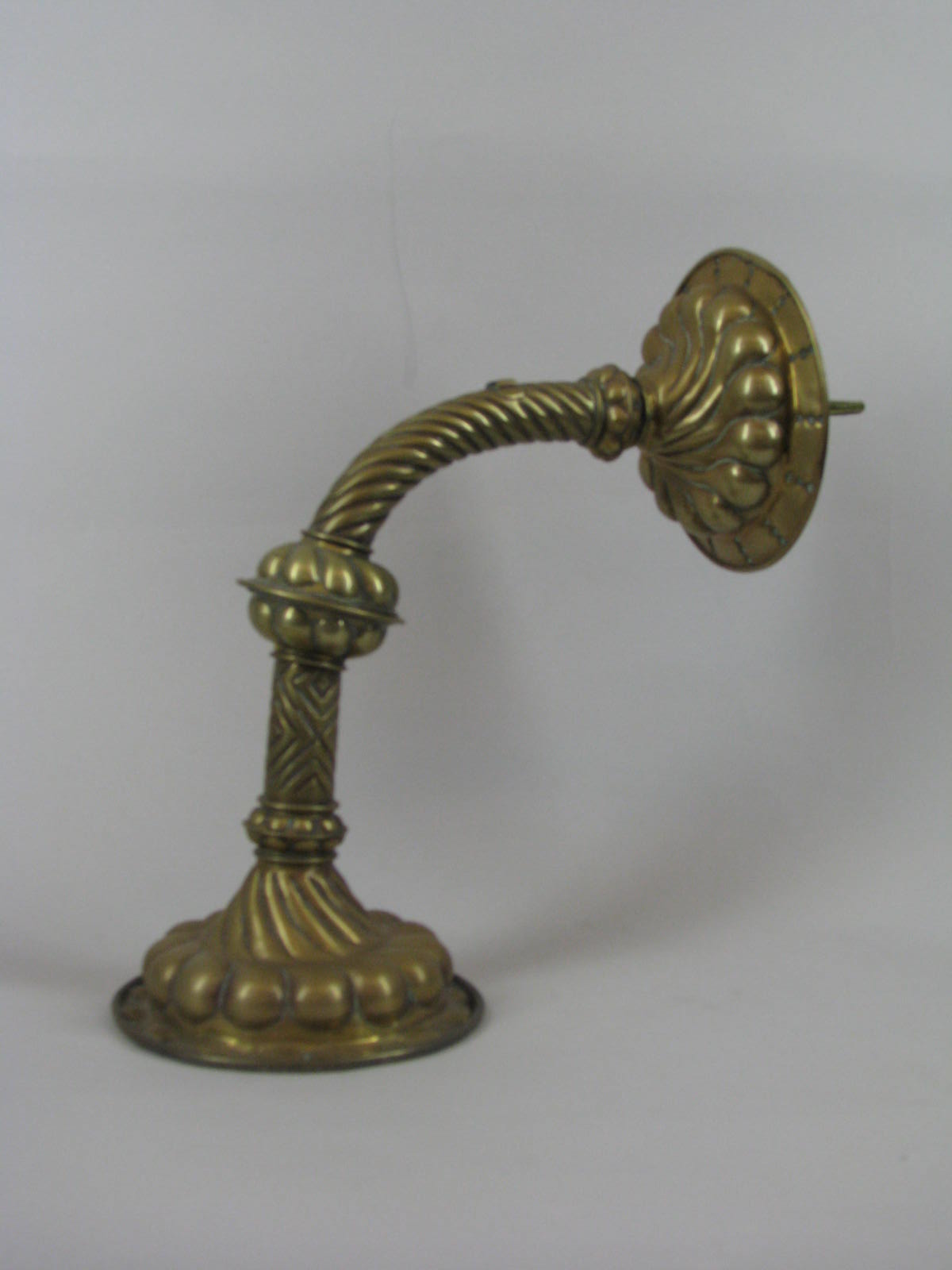 Wandarm, met ronde lekbak, versierd met blaasknorren, getordeerde stam tot de nodus