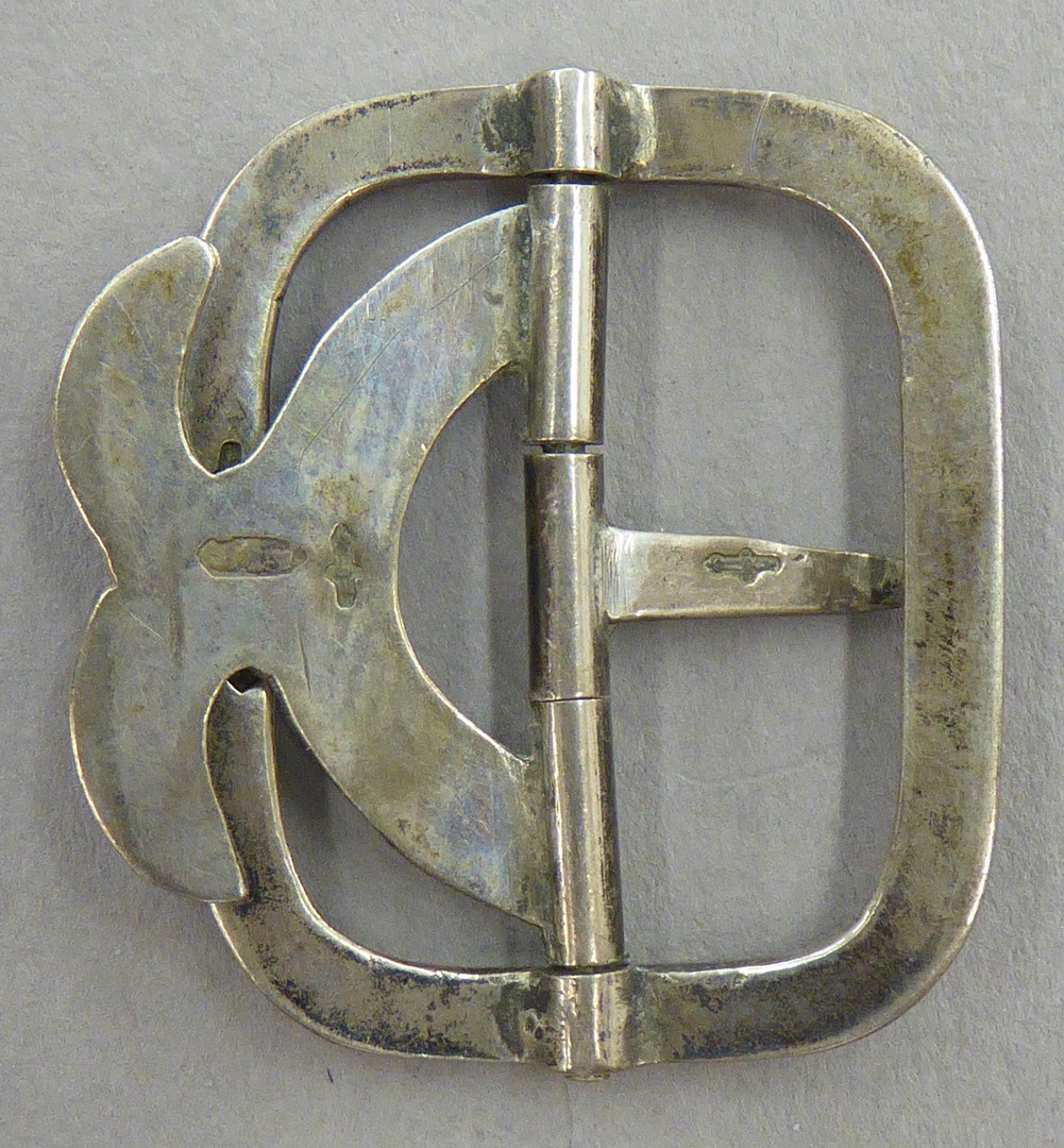 Schoengesp van pastoor Cornelis Johannes Mulder, gemerkt met drie zwaardjes en twee meestertekens, geribbeld oppervlak