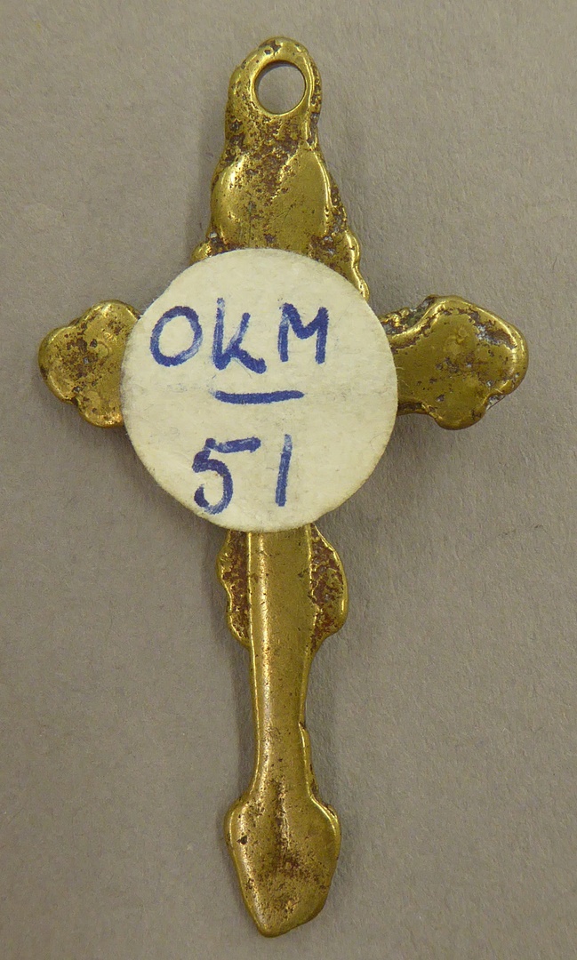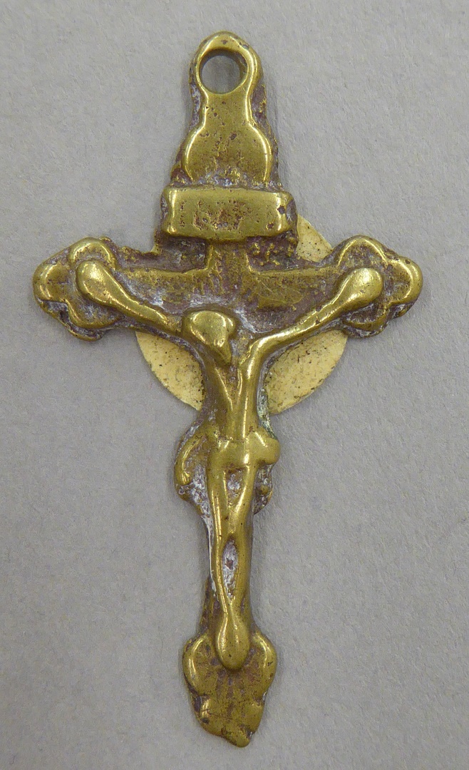 Kruisbeeldje, balken eindigend in driepassen met "I.N.R.I."