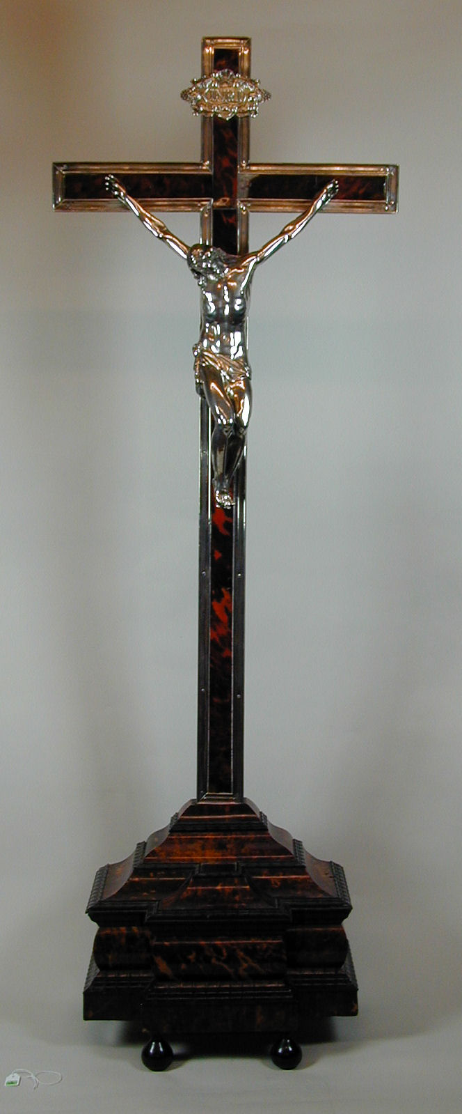 Crucifix op rechthoekig geleed voetstuk op zes balpootjes