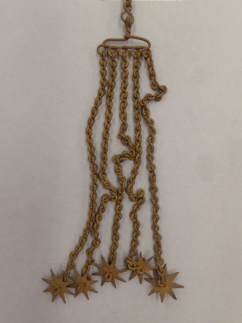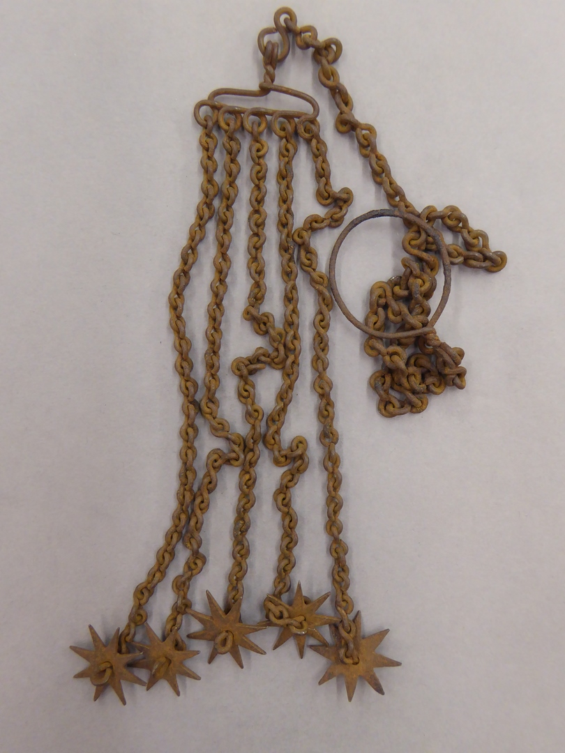 Boetegesel van François de Paris, onderaan ring waaraan vijf kettinkjes met scherpe stervormen
