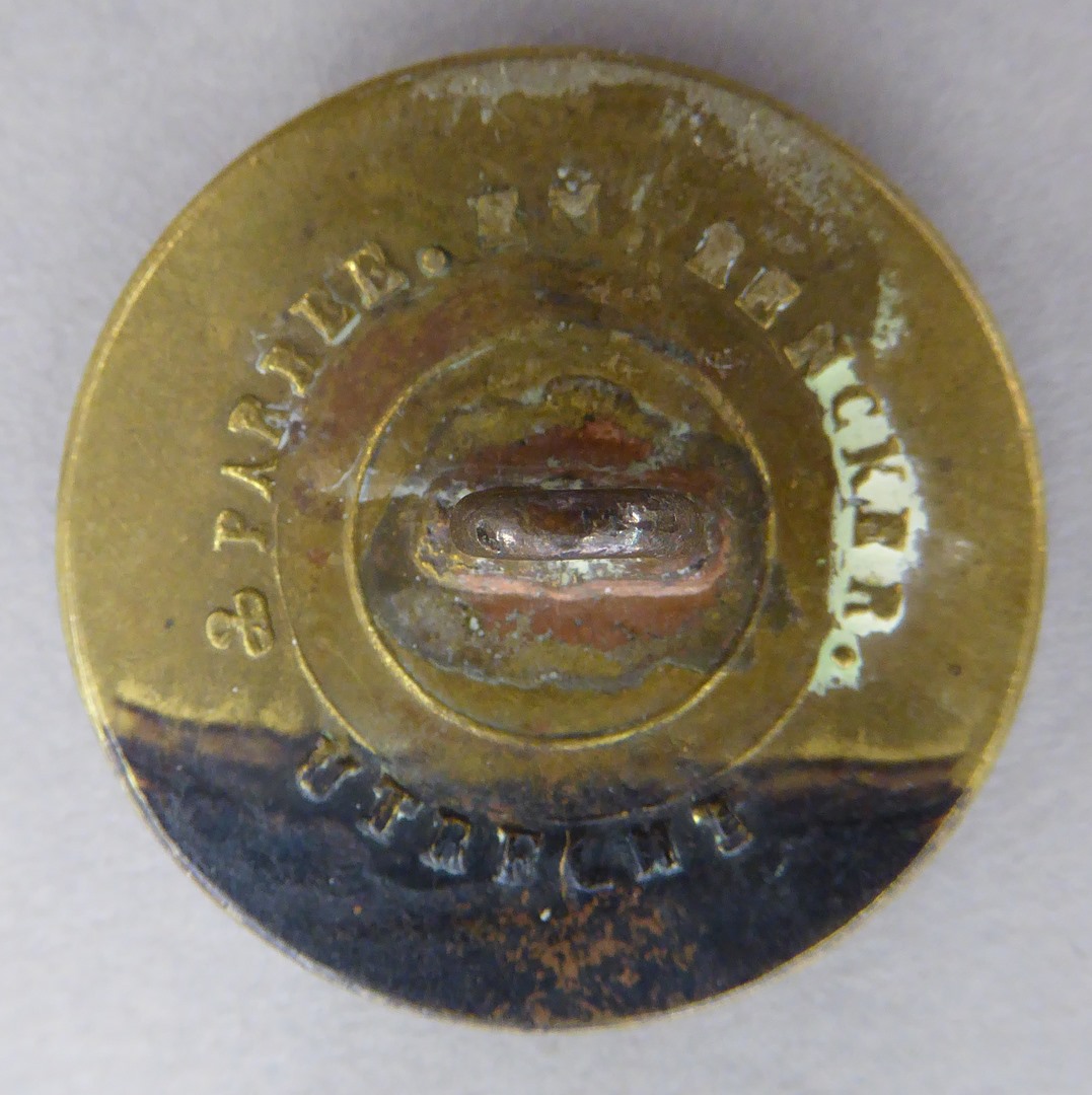 Knoop, rond, met Willibrordus met kerk en staf, met "Oud Roomsch Katholyk Weeshuis"