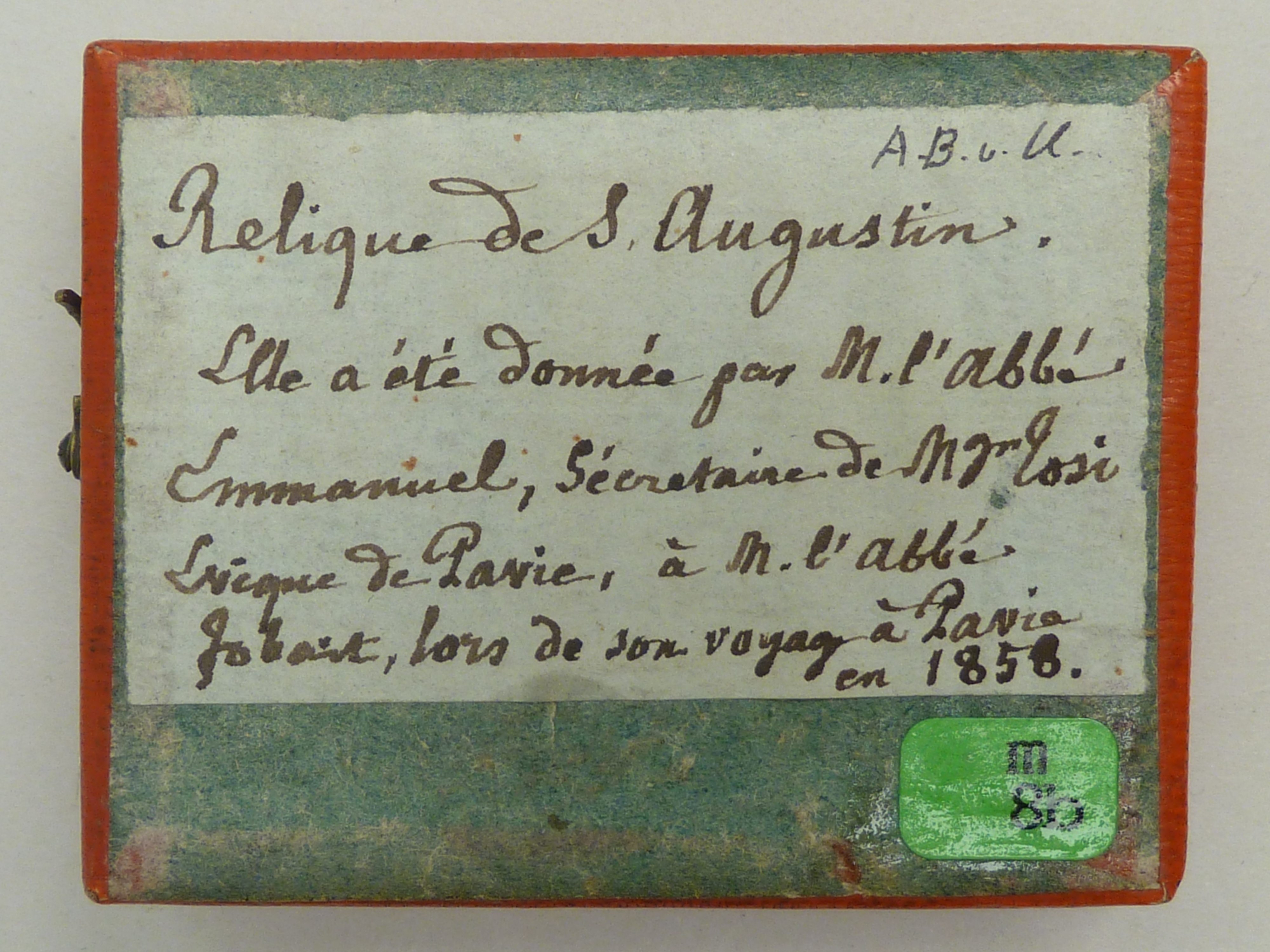 Rode foedraal voor OKM m8a met goudkleurige rand op deksel, onder met "... de S. Augustin ... a Pavia en 1858"