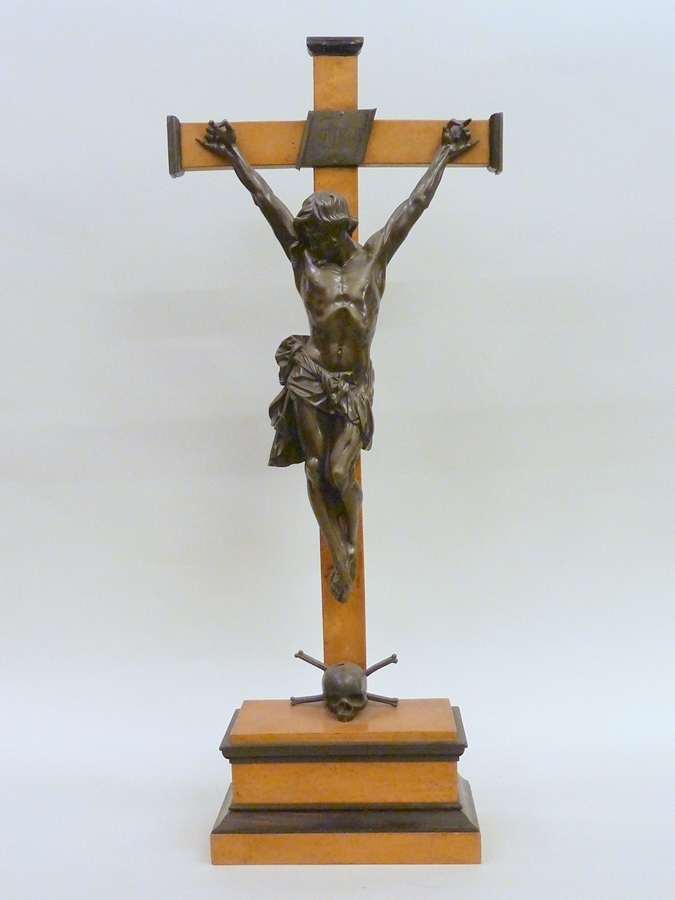Crucifix, gefineerd met notenhout, bronzen Christusfiguur