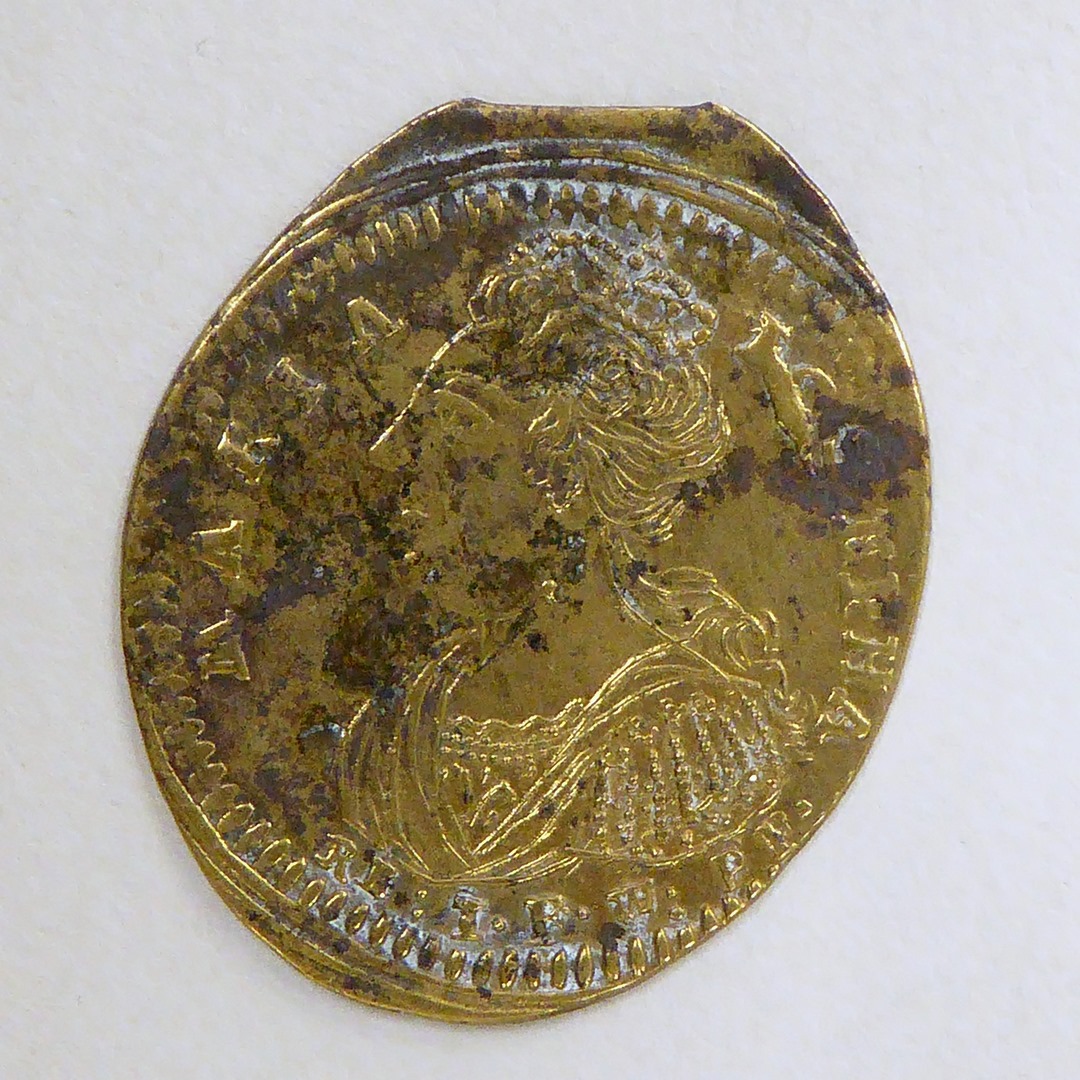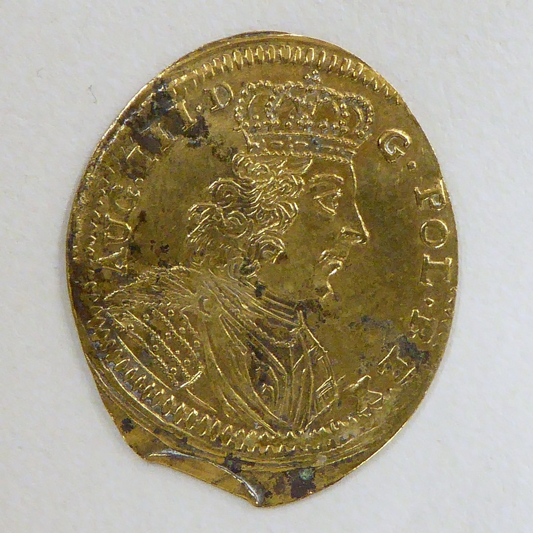 Gedenkpenning, ovaal, met portret Augustus II koning van Polen, kz. portret echtgenote