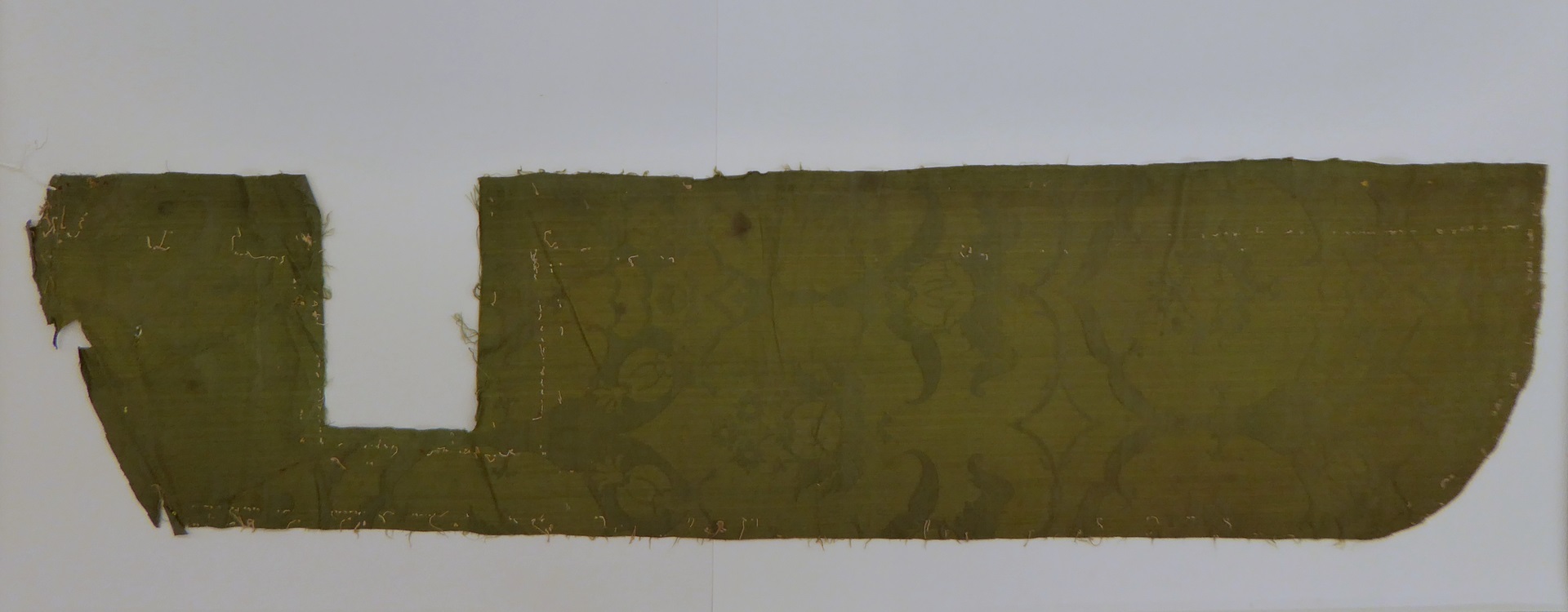 Groene damast met granaatappelmotief (4 fragmenten), resten voering kazuifel