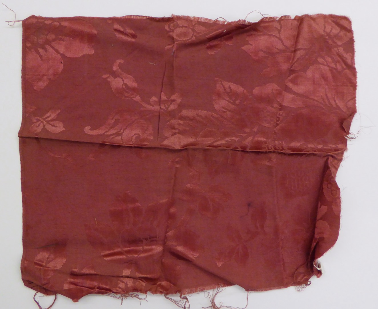 Rode damast met bloem- en bladmotieven