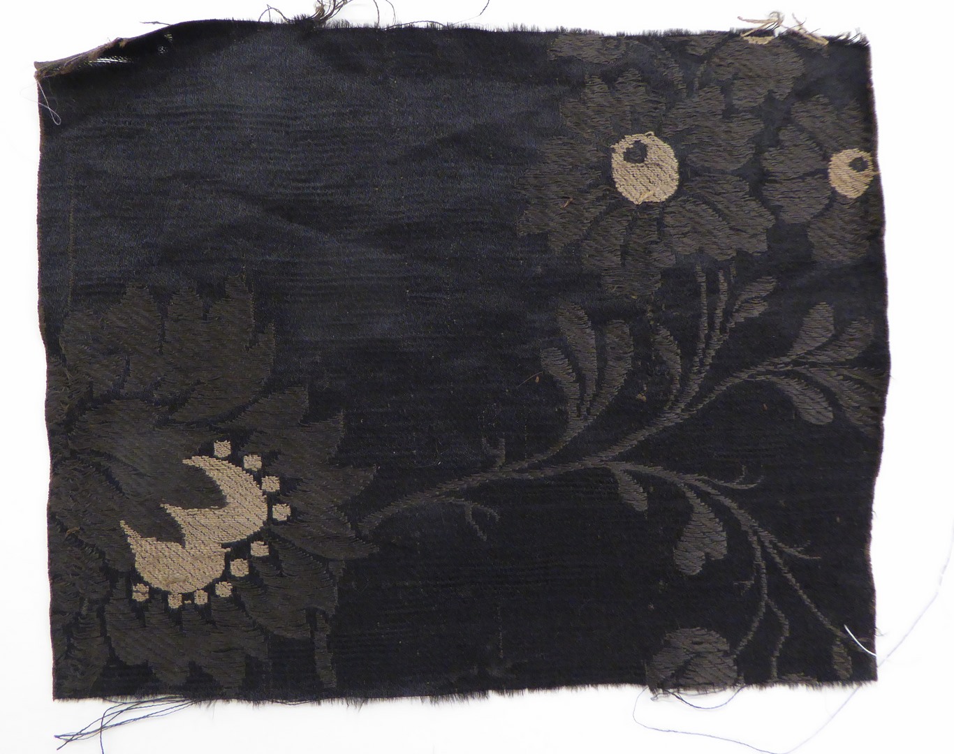 Zwart brochéweefsel met slingerende bloemranken, crème