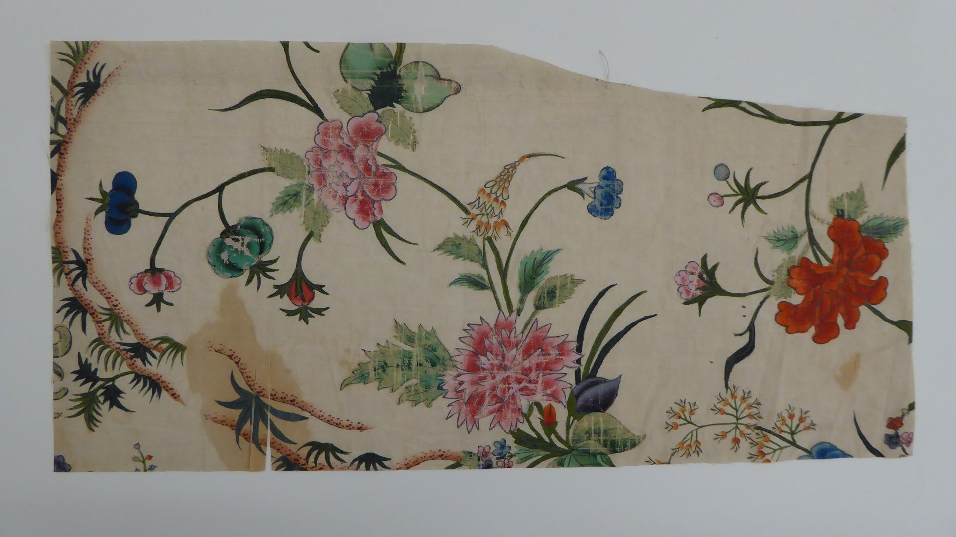 Witte ripszijde bedrukt met veelkleurige slingertakken, Chinoïserie