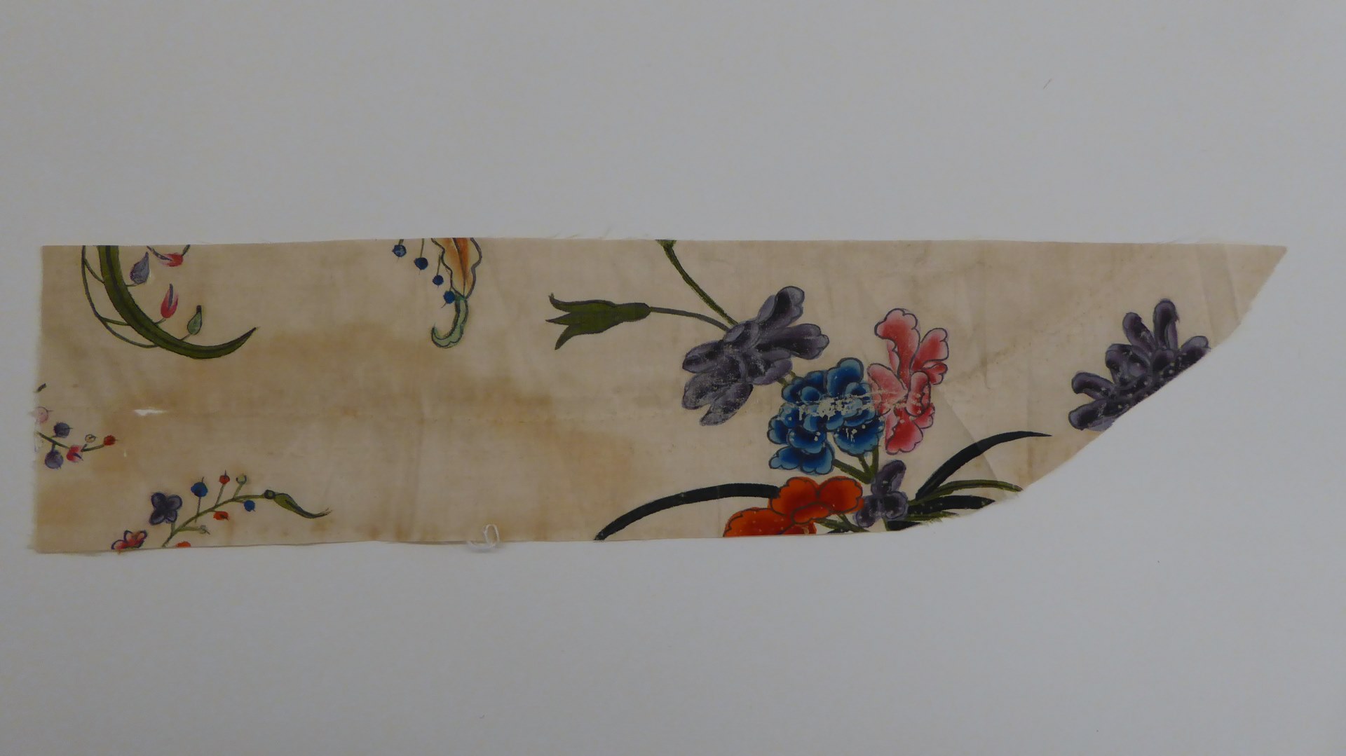 Witte ripszijde bedrukt met veelkleurige slingertakken, Chinoïserie
