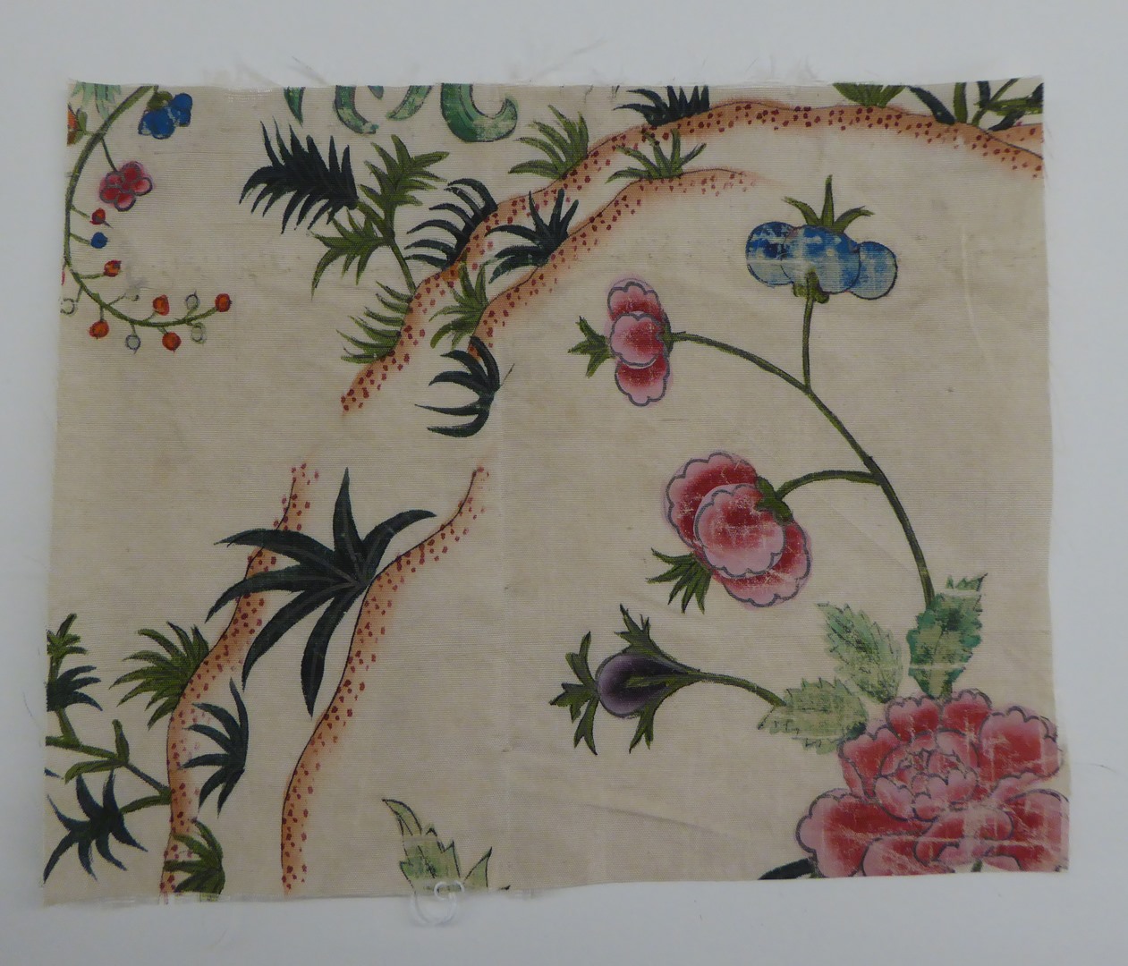 Witte ripszijde bedrukt met veelkleurige slingertakken, Chinoïserie
