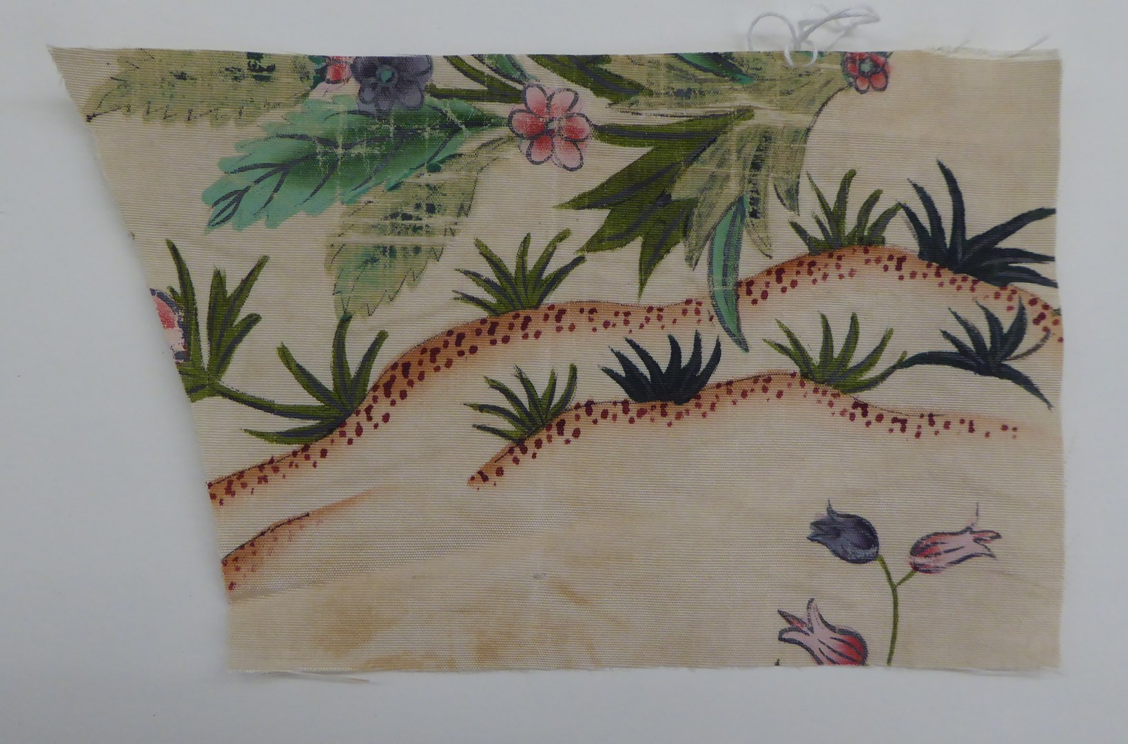 Witte ripszijde bedrukt met veelkleurige slingertakken, Chinoïserie