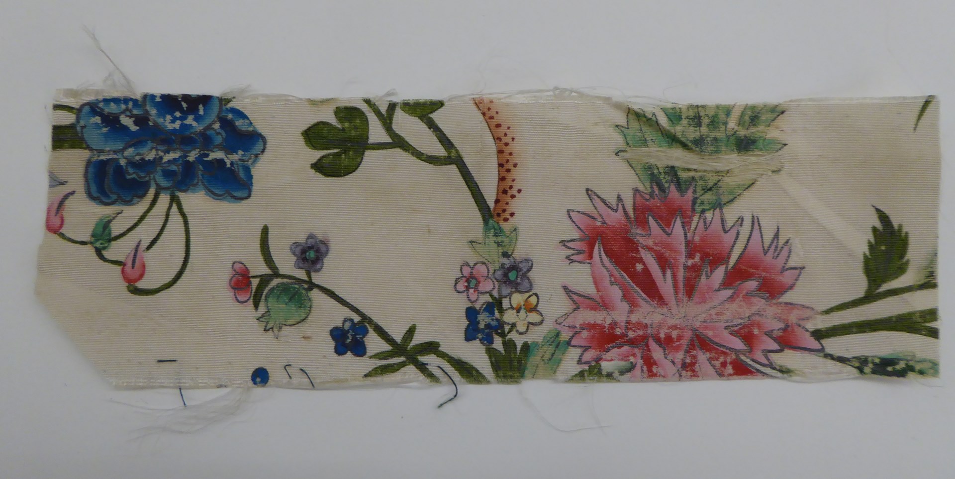 Witte ripszijde bedrukt met veelkleurige slingertakken, Chinoïserie