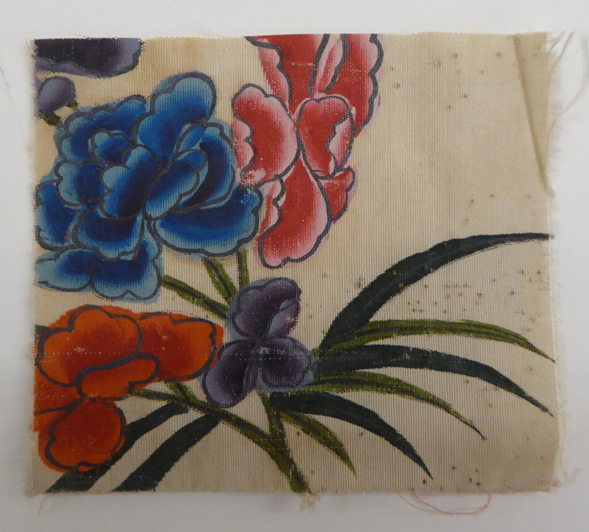 Witte ripszijde bedrukt met veelkleurige slingertakken, Chinoïserie