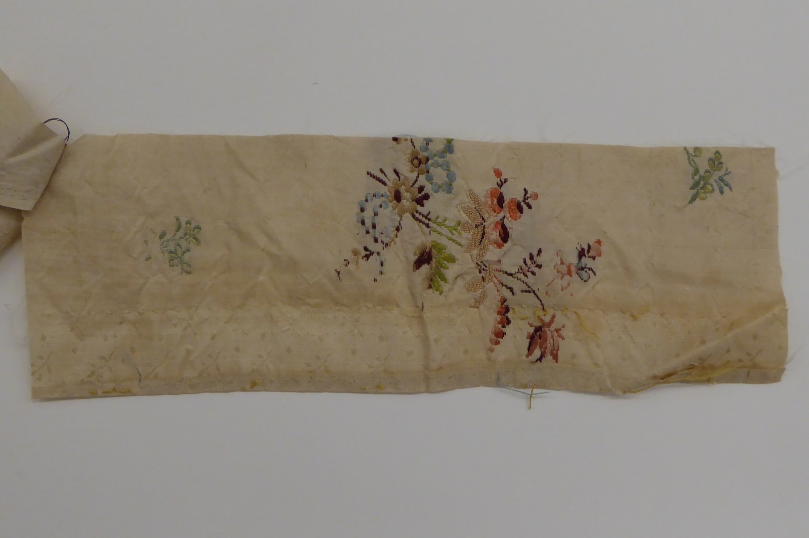 Naturel brochéweefsel met veelkleurige boeketten met strikken en losse bloemtakjes