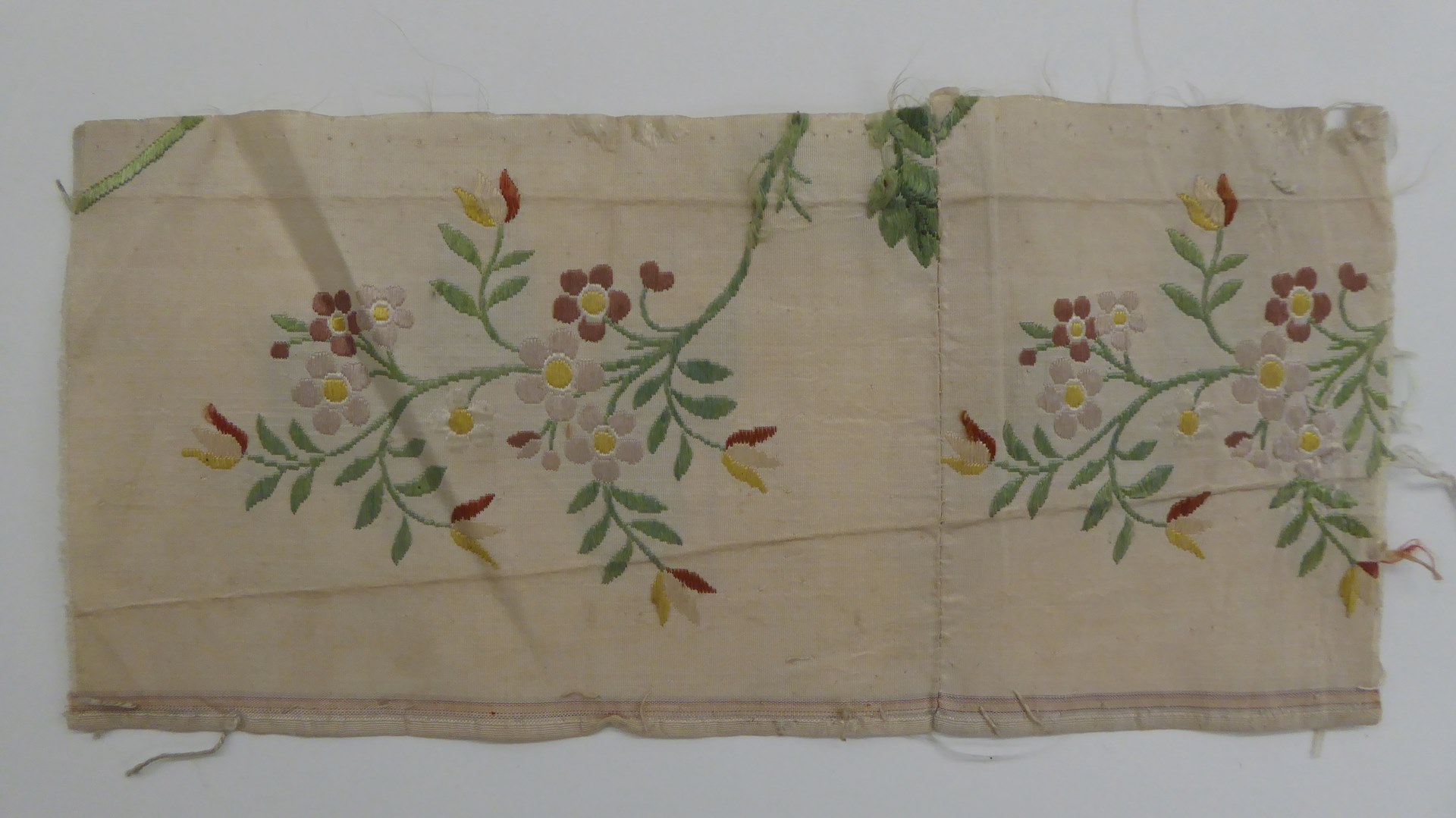 Witte gros de Tours met veelkleurige bloemtakjes