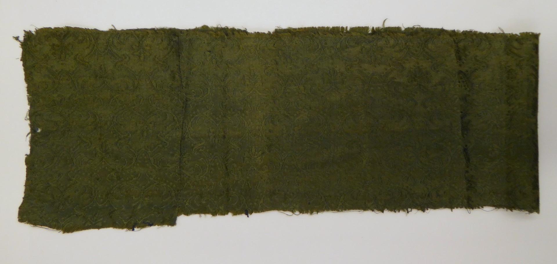 Groen zijdeweefsel met gestileerd granaatappelmotief