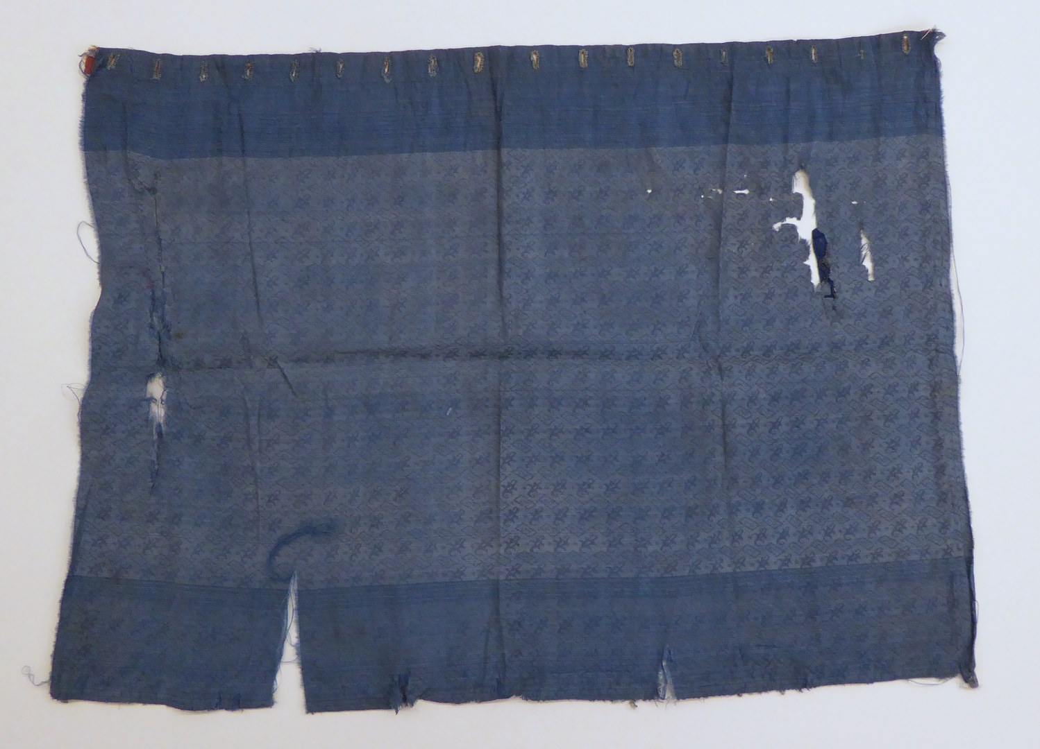 Blauw zijdeweefsel met symmetrische motieven, 18 knoopsgaten