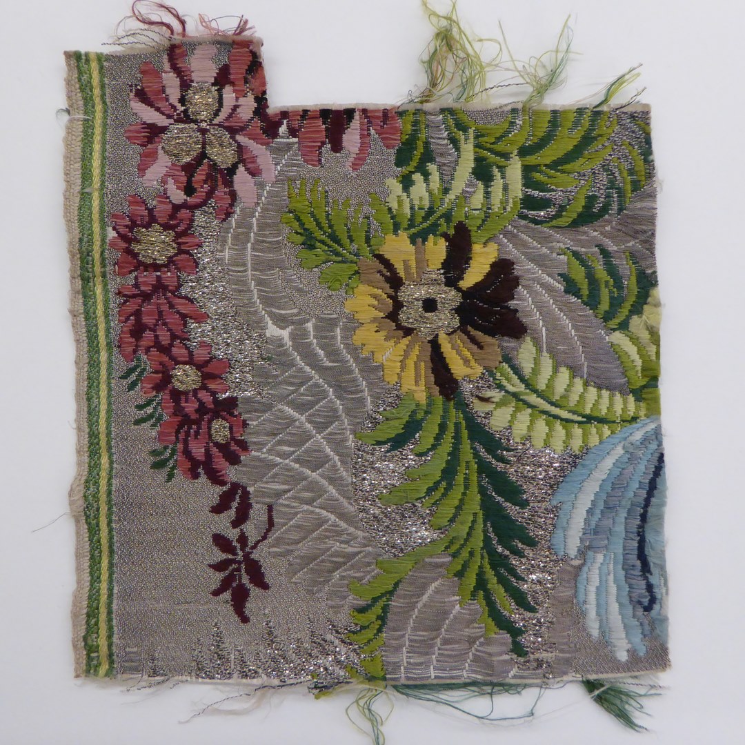 Brochéweefsel met veelkleurige en zilveren-gouden bloemen