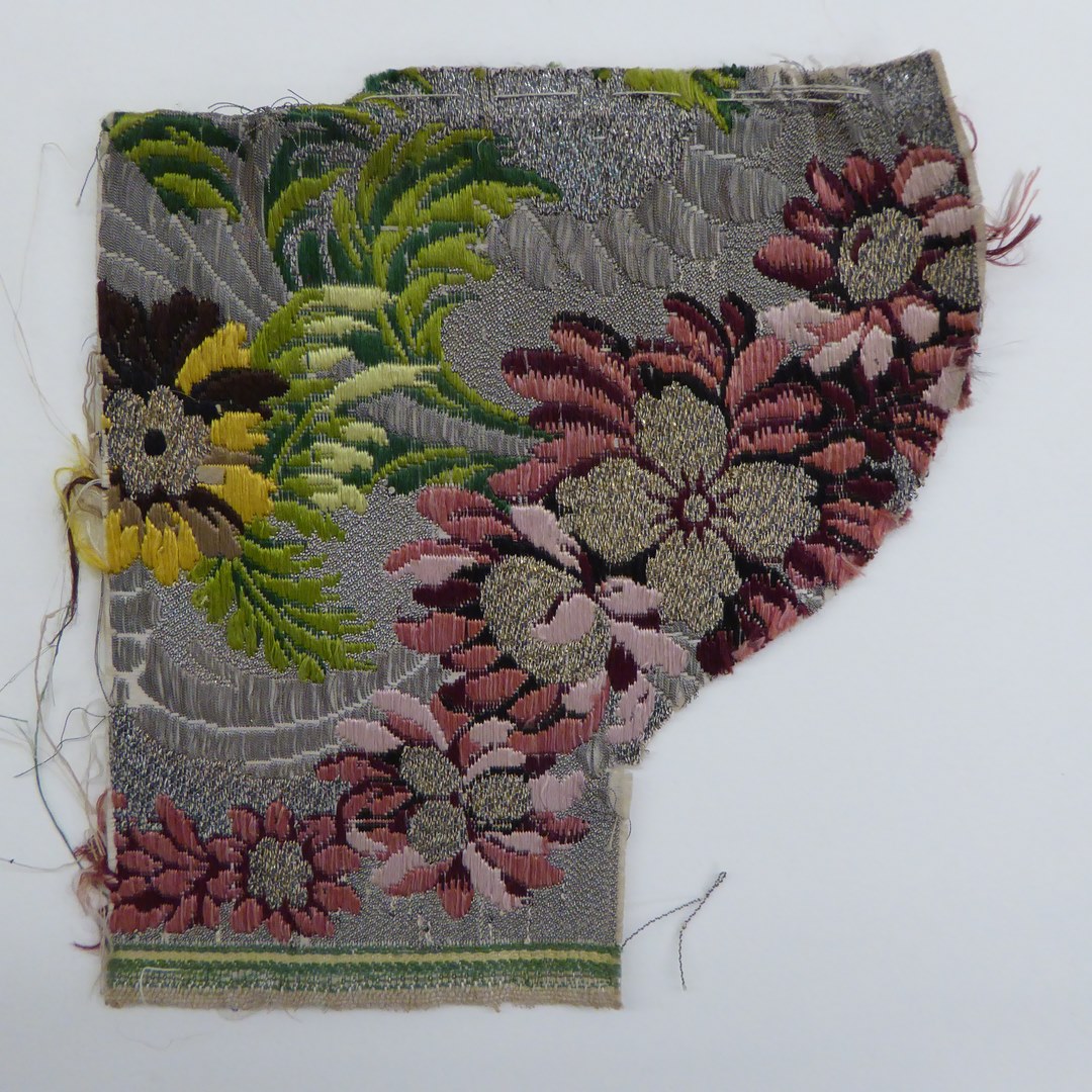 Brochéweefsel met veelkleurige en zilveren-gouden bloemen