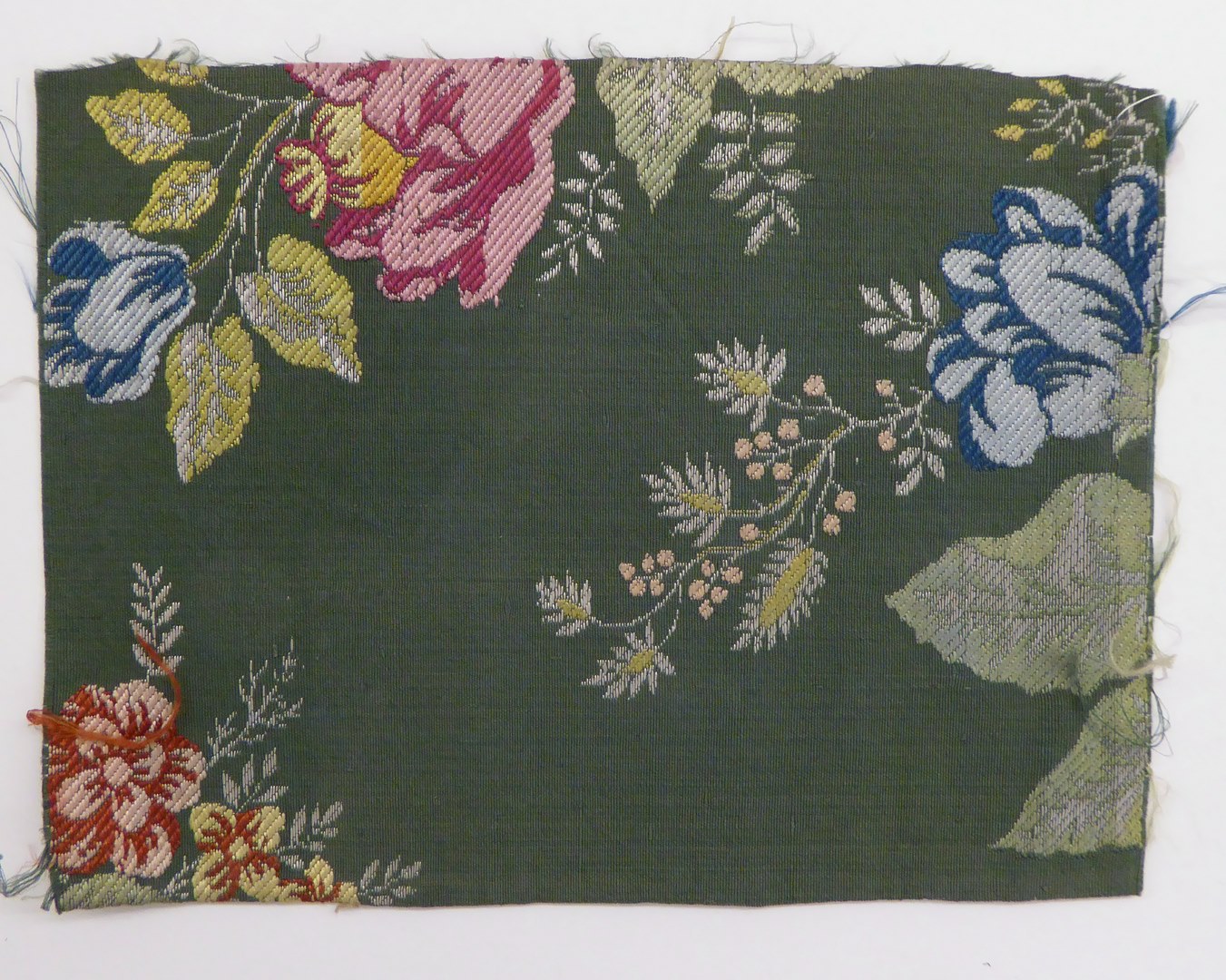 Groene lampas met gekleurde strooibloemen