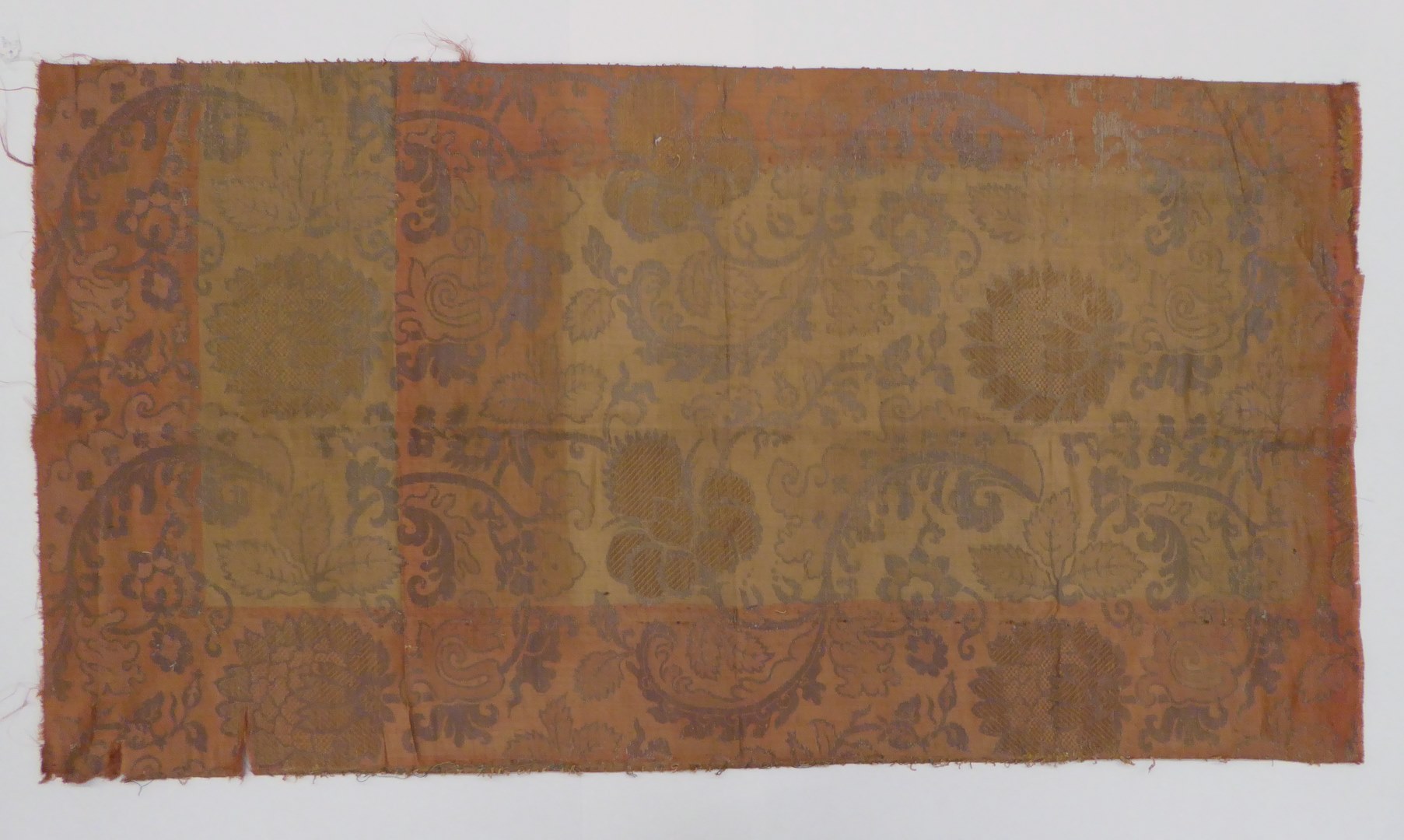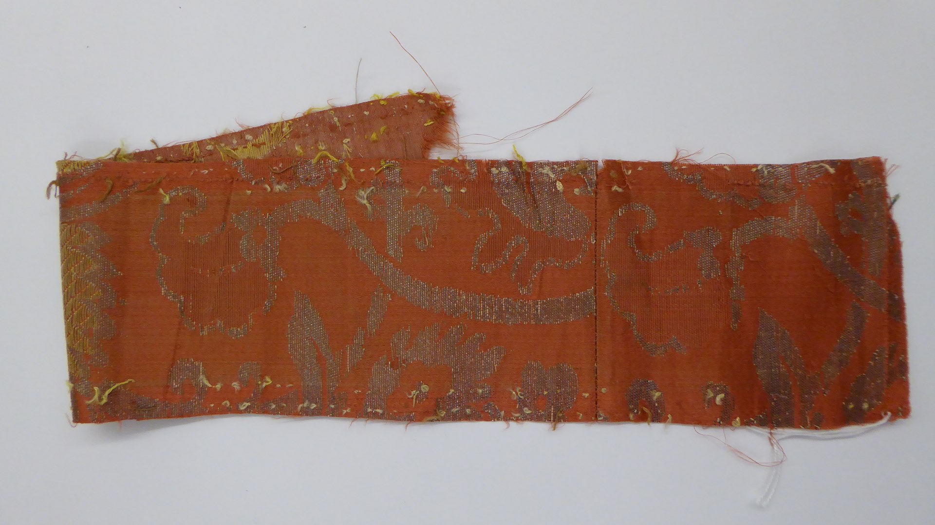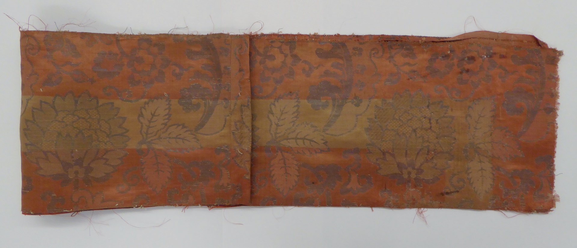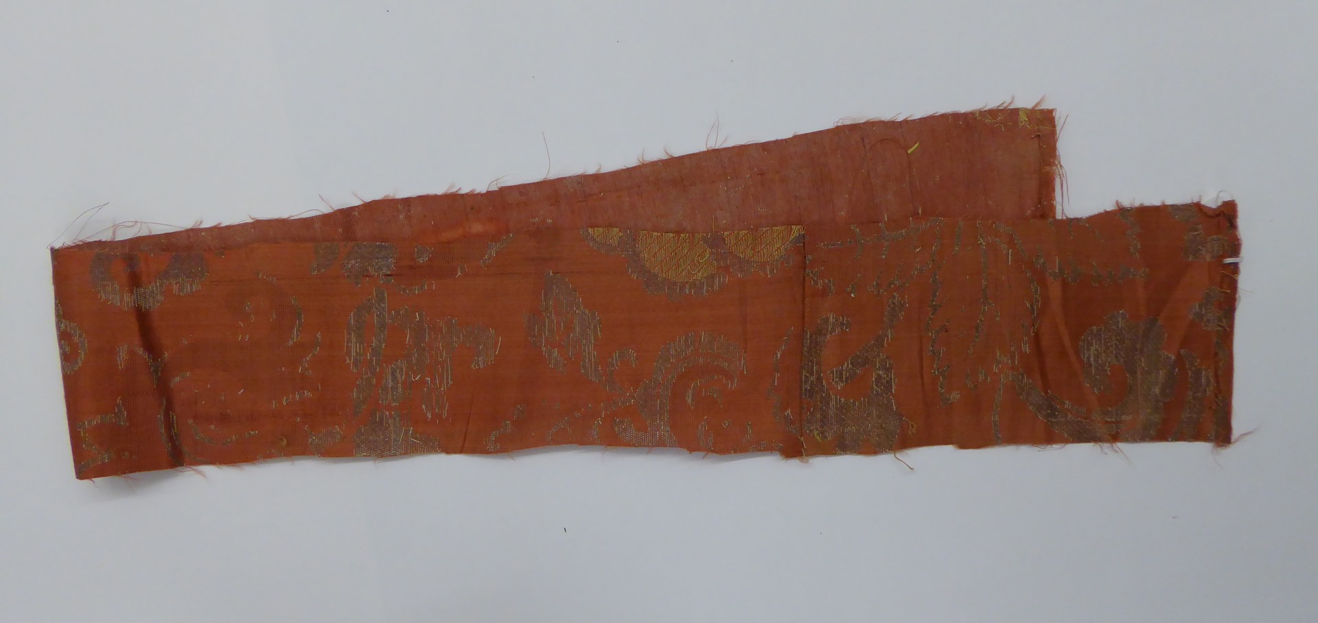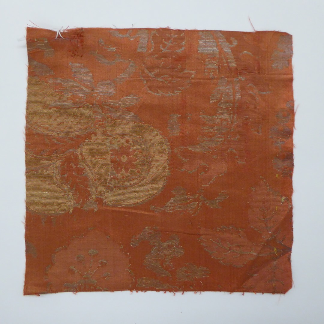 Bruinrood weefsel (11 fragmenten) met zilver granaatappel- en plantenmotief
