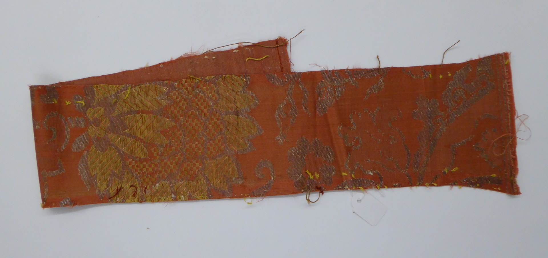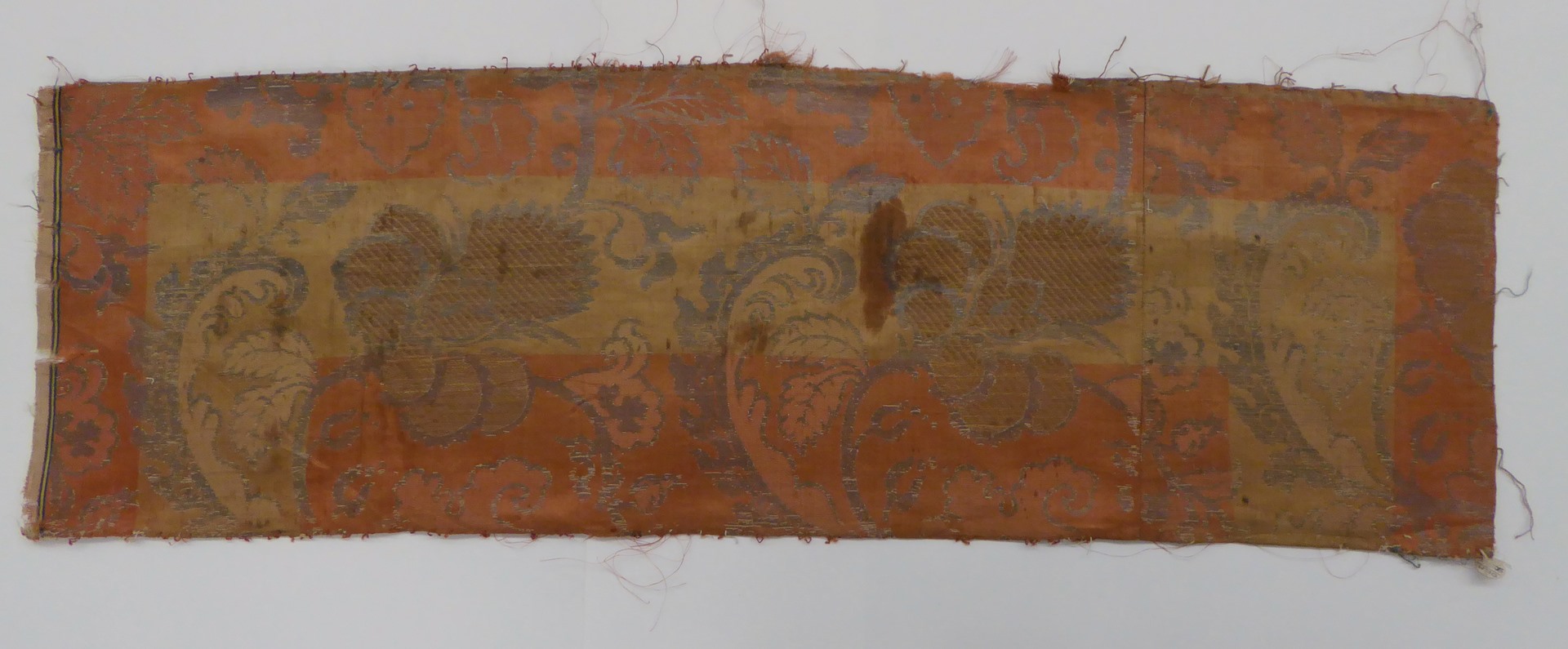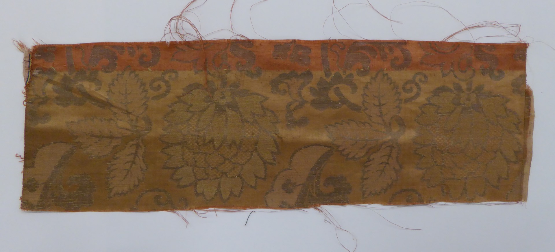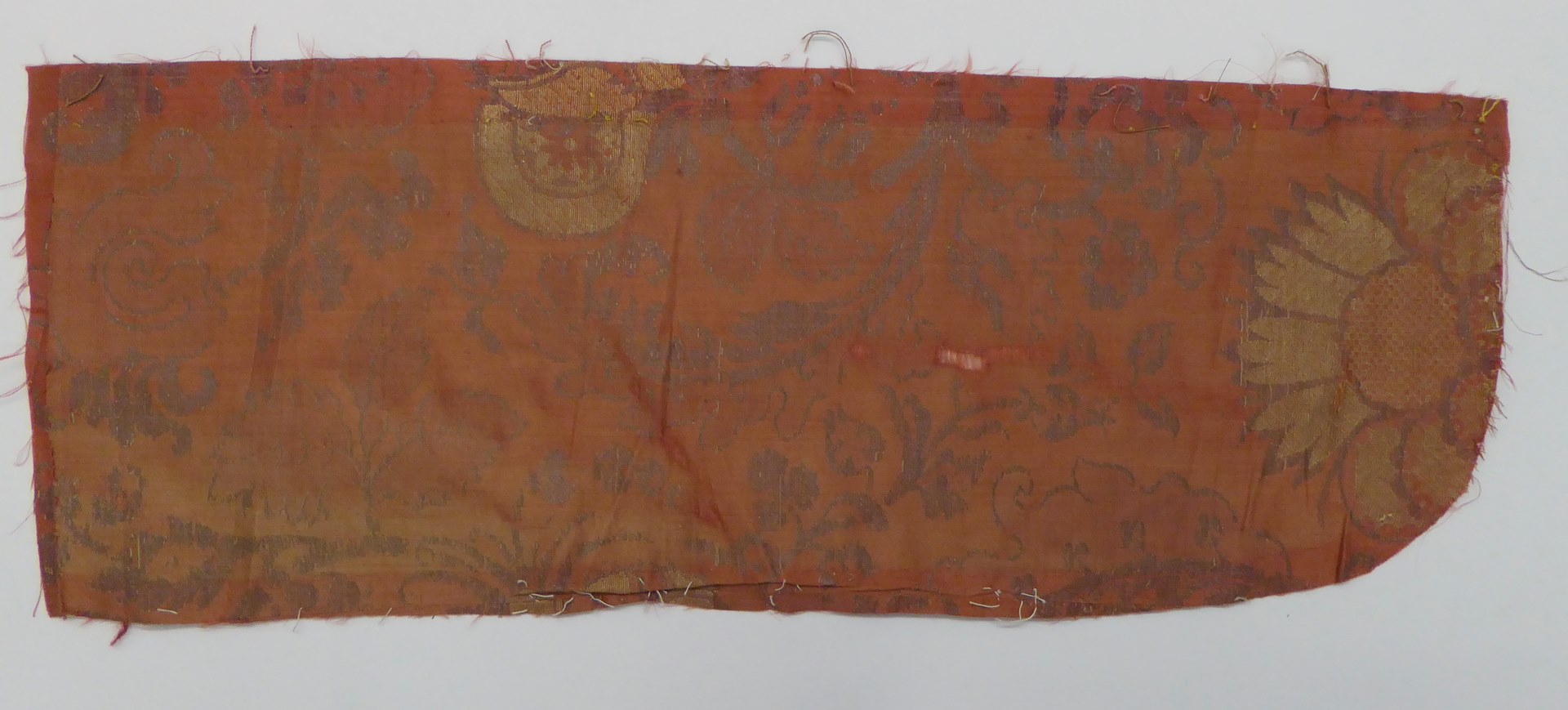 Bruinrood weefsel (11 fragmenten) met zilver granaatappel- en plantenmotief