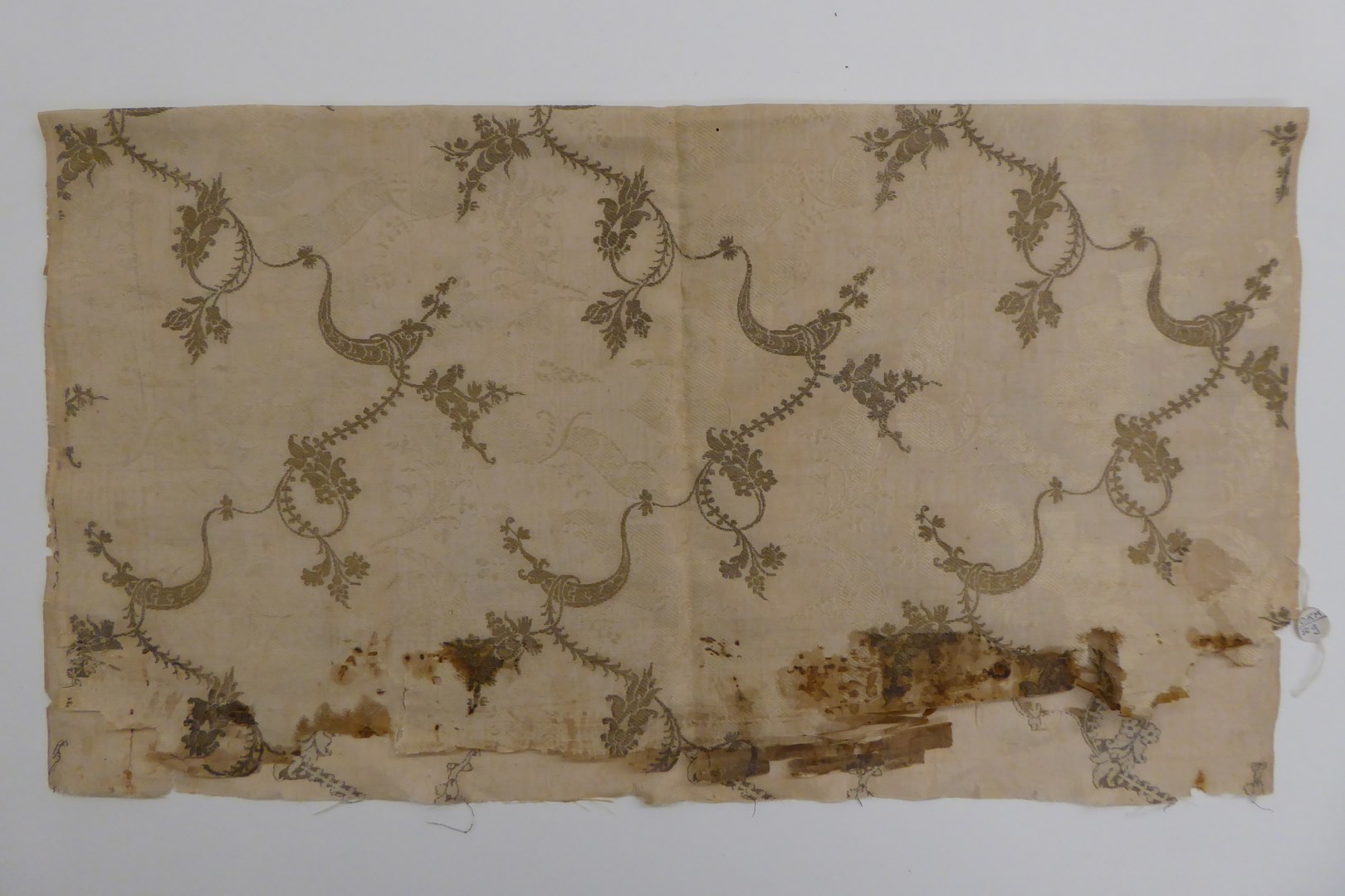 Crème damast met gouddraad voluten en slingerranken in Lodewijk XIVde patroon